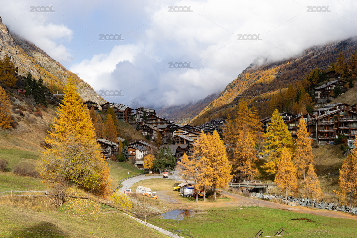 瑞士冰川之城采尔马特坐落在山谷云雾之中