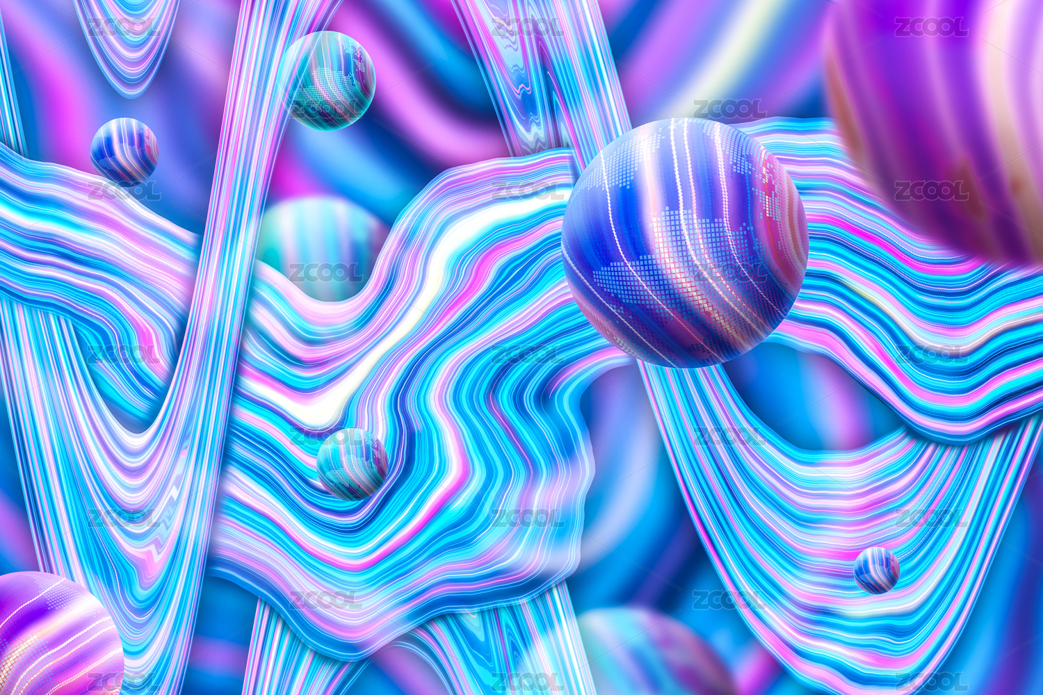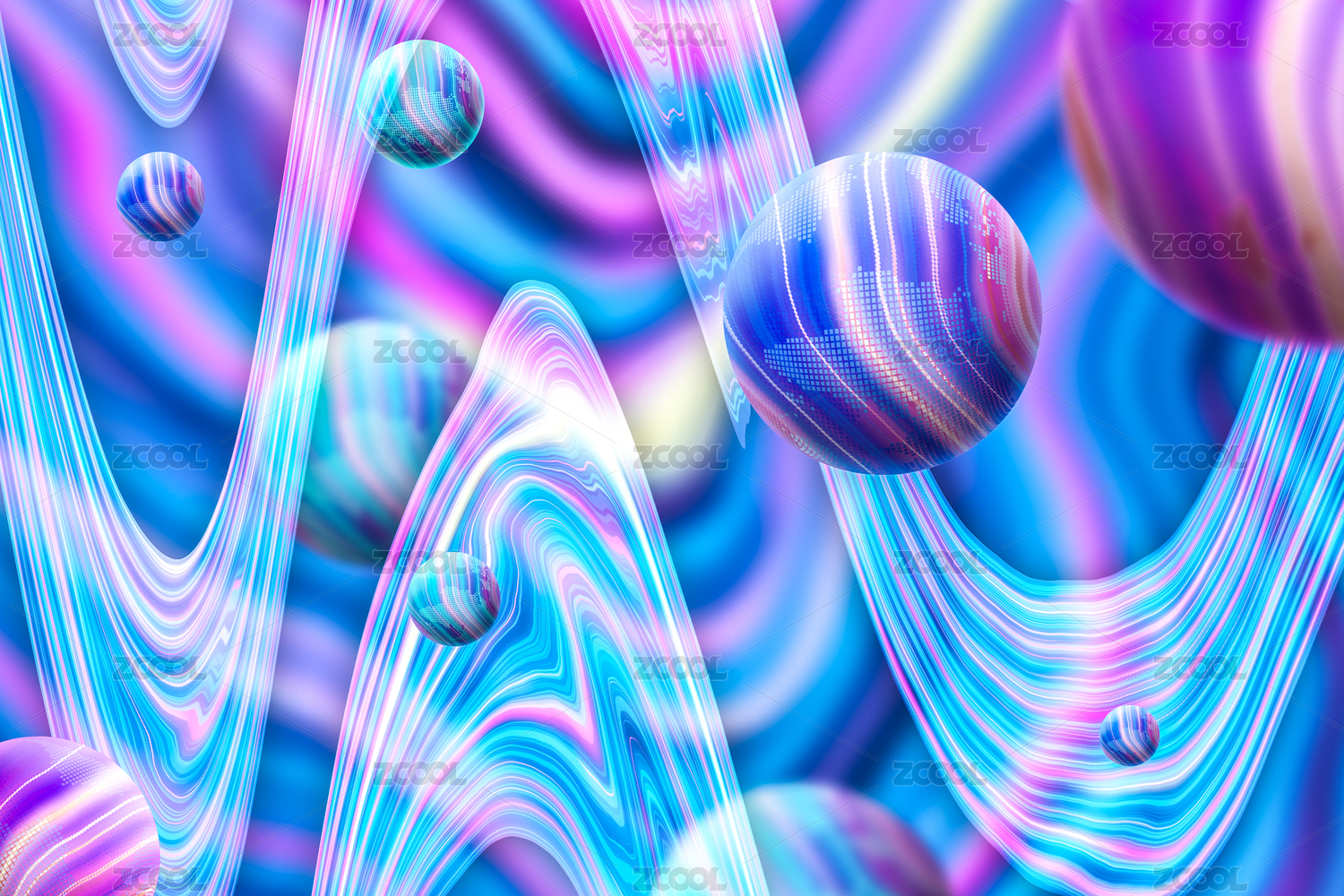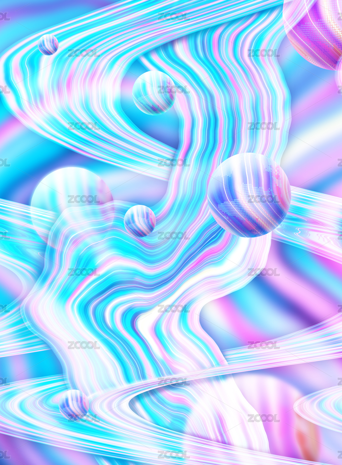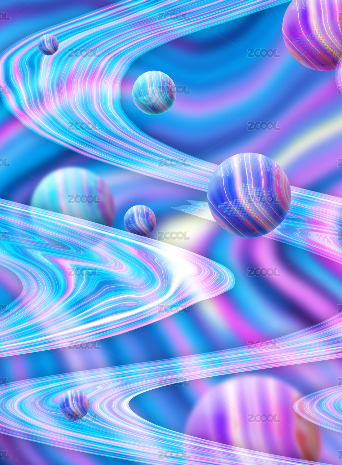 斑斓悬浮星球全息箔元宇宙概念弯曲纹理背景