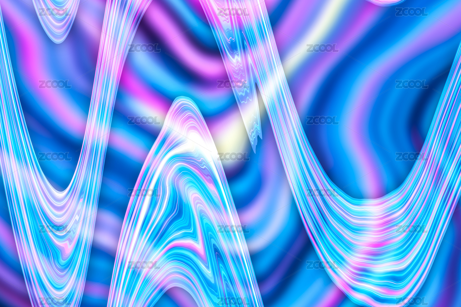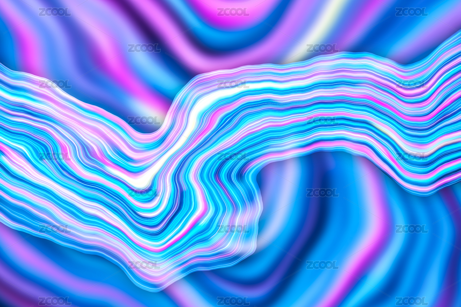水面流体山峰全息色彩3D插画