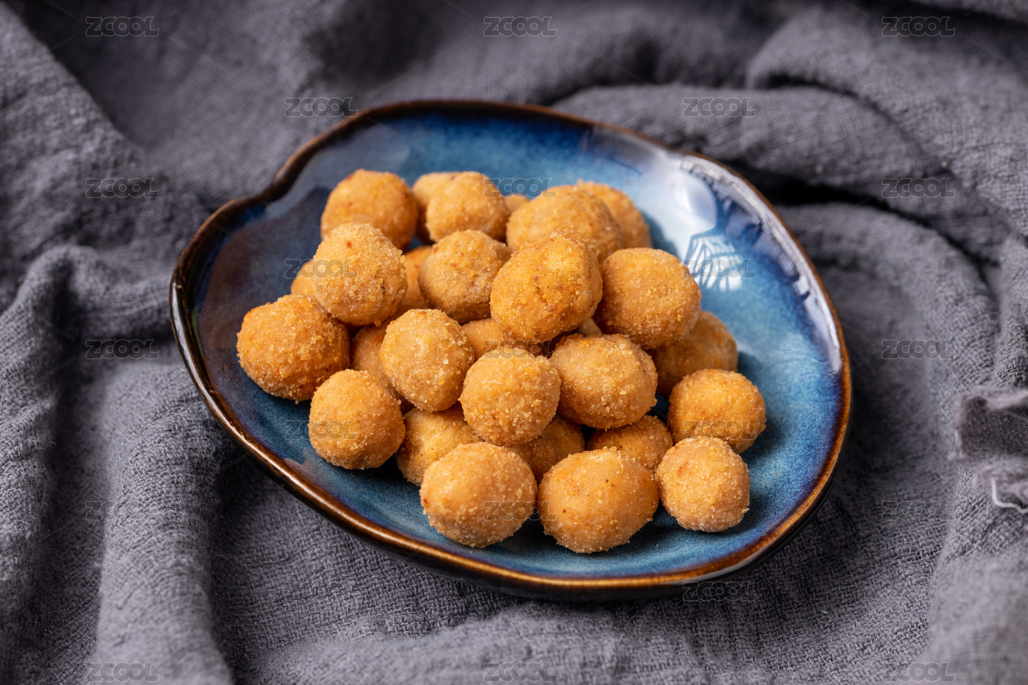 白底上放着一盘香酥怪味豆