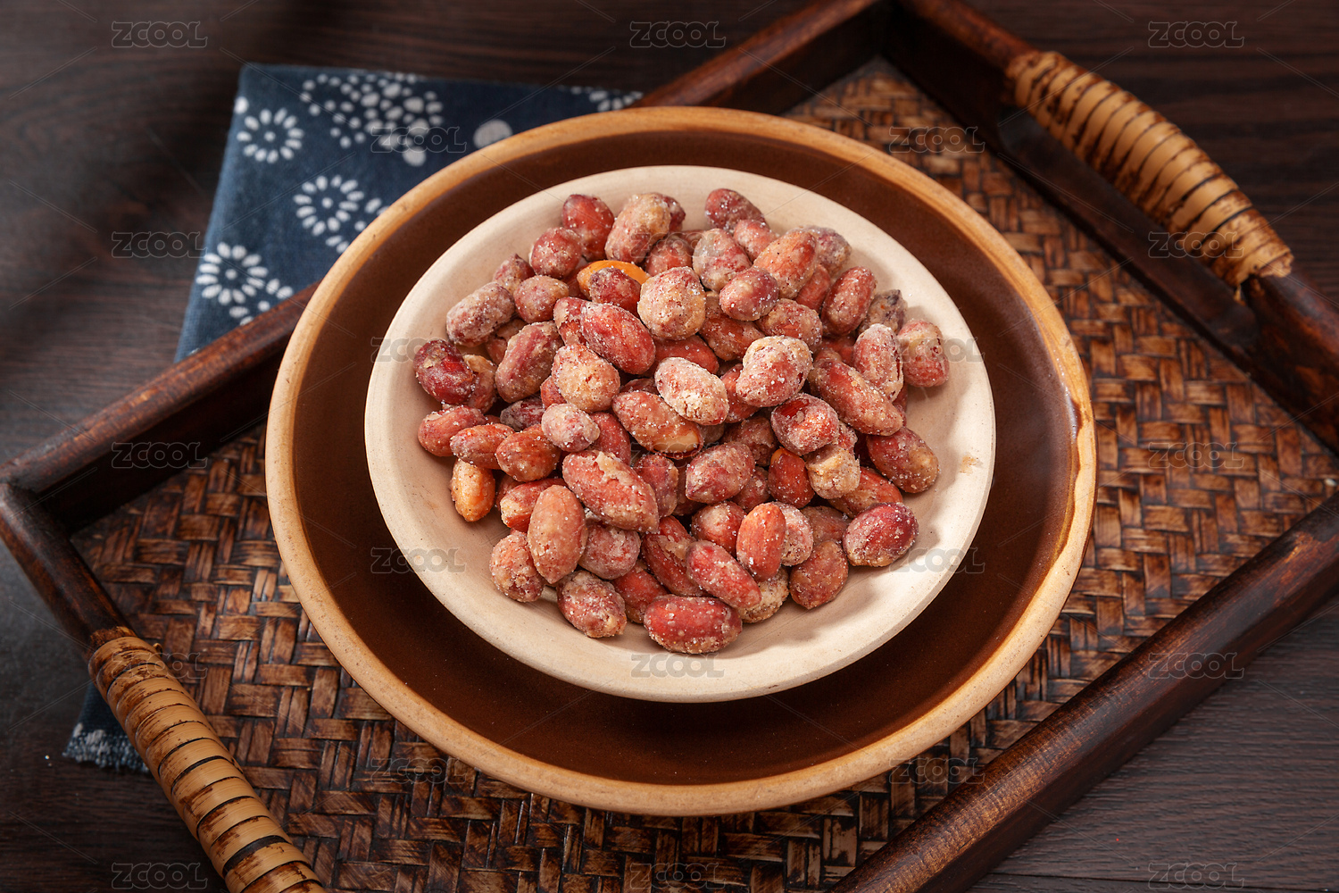 白底上放着一盘多味花生米