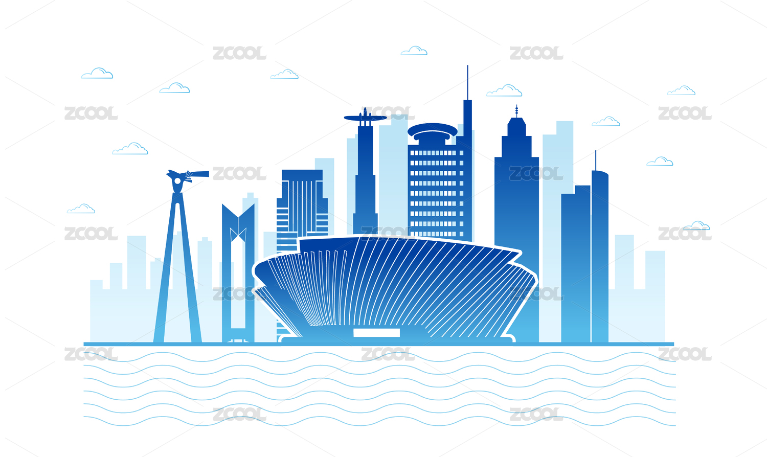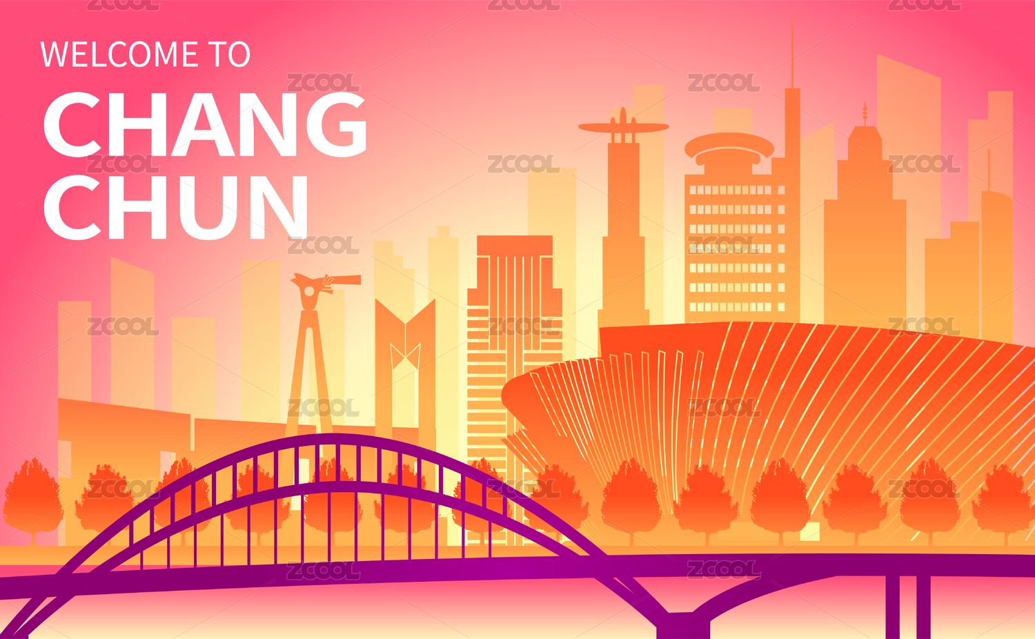 剪纸风格中国吉林省长春市著名地标文化广场插画
