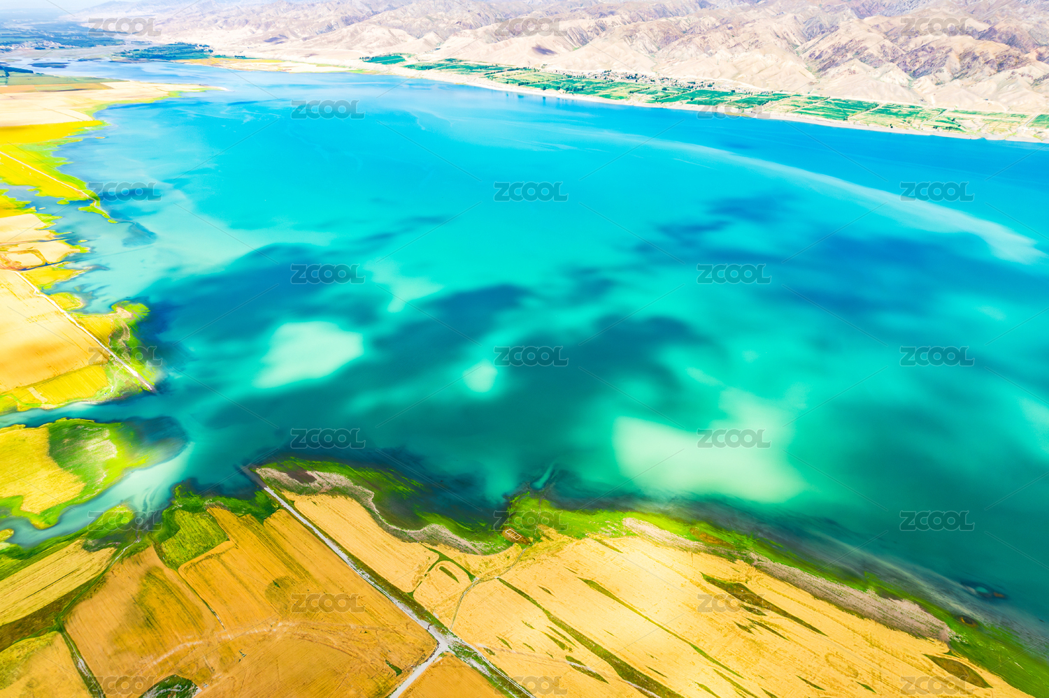中国青海 察尔汗盐湖 翡翠绿的湖水特写