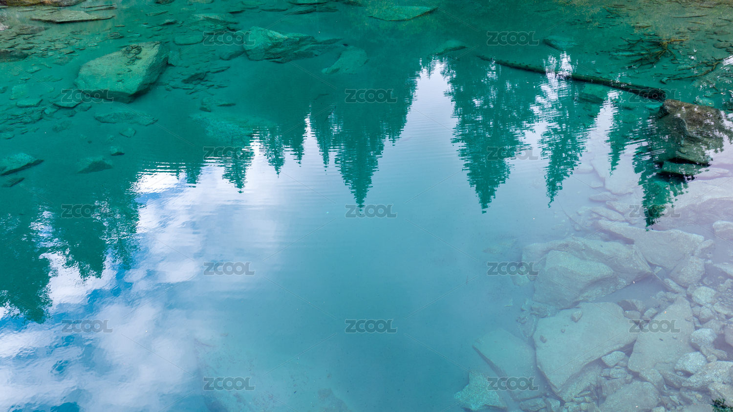 中国四川甘孜措普沟风景区翡翠绿色的湖泊