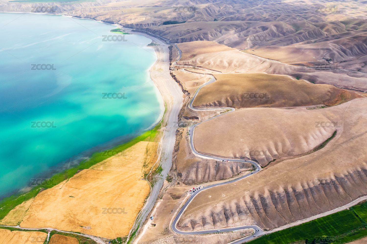 中国新疆特克斯恰甫其海自然风光航拍