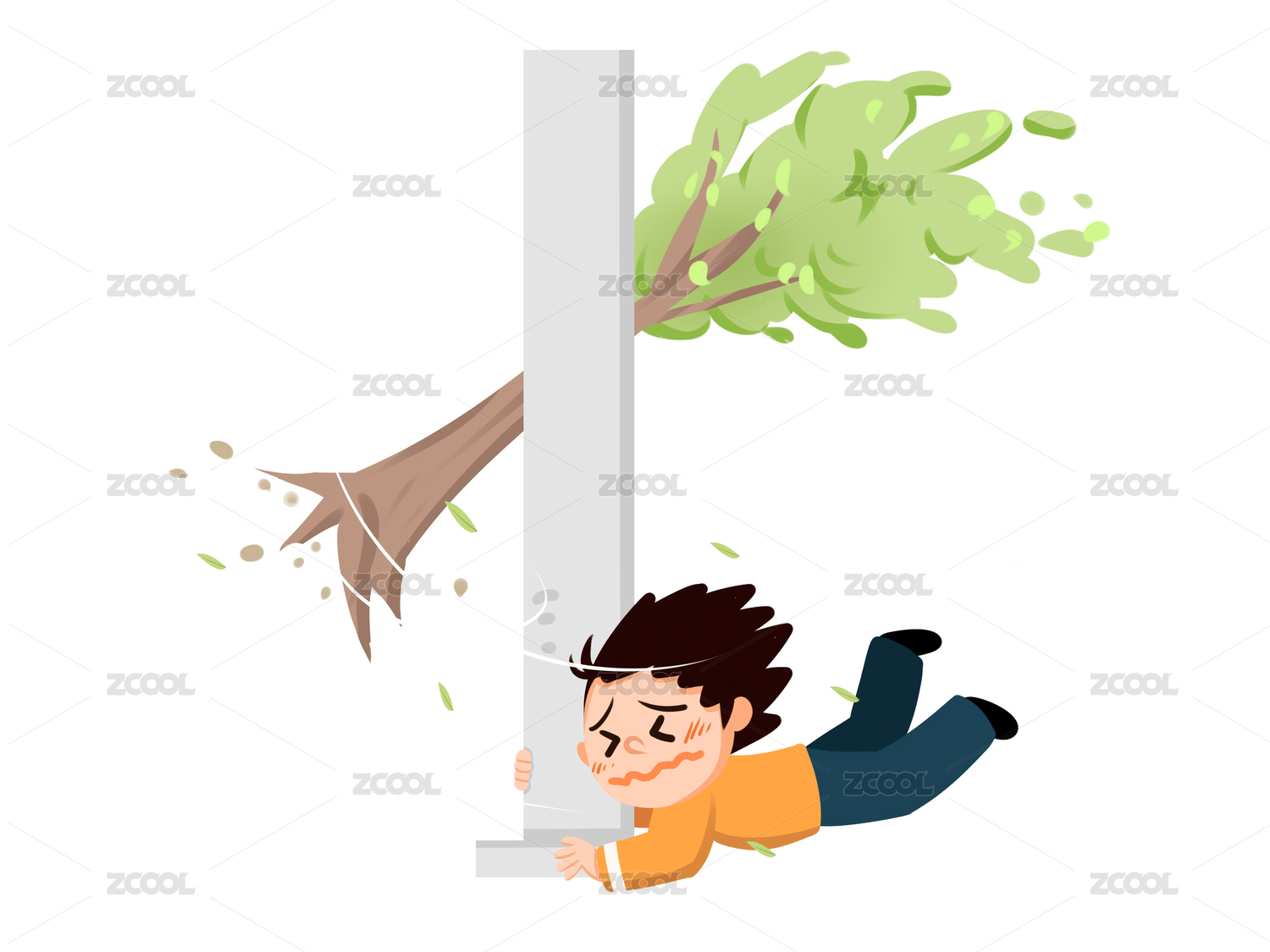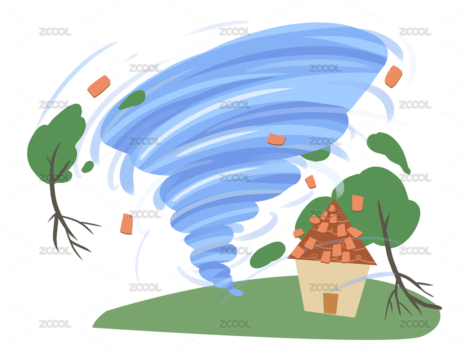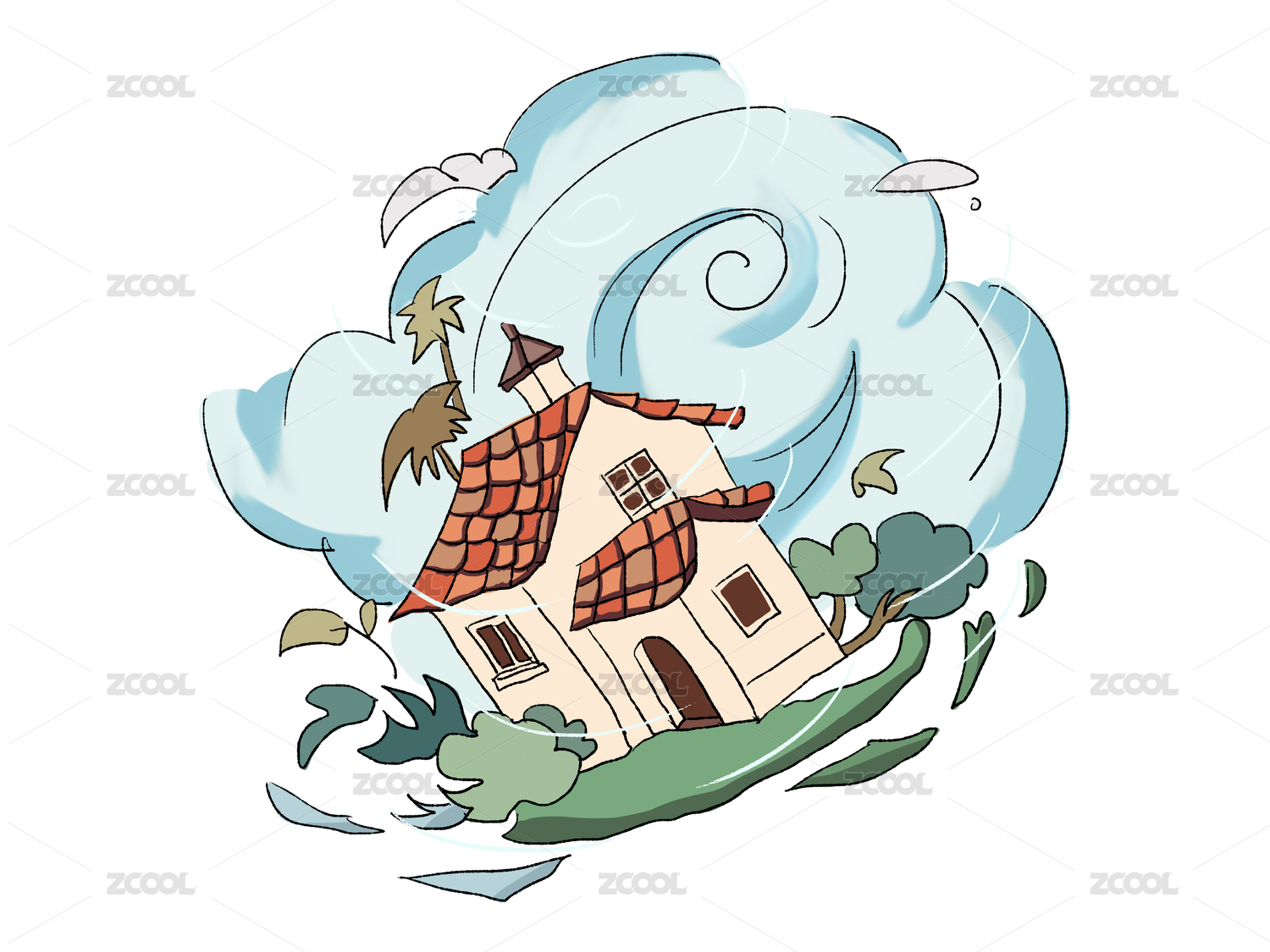 22台风席卷房子树木瓦片飞天七歪八扭元素