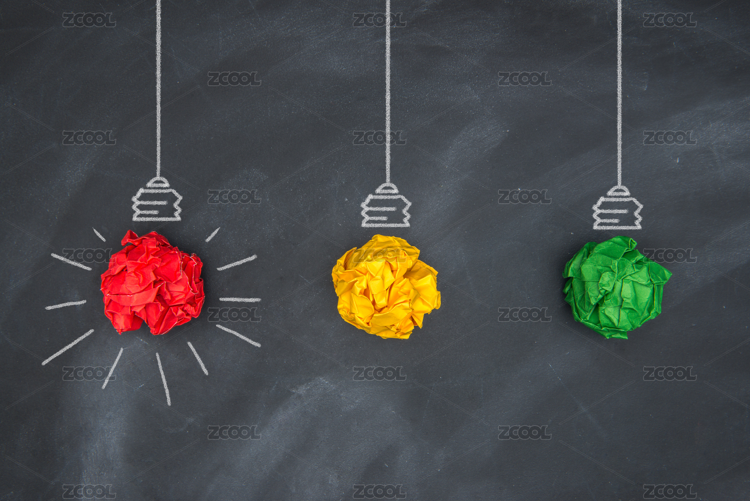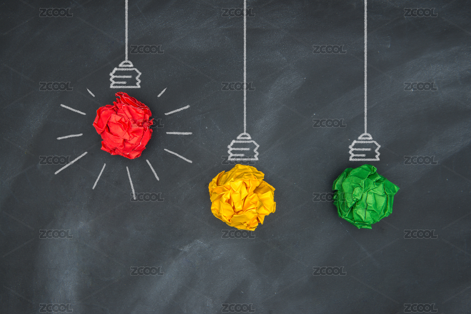 全球经济亮红色预警,在黑板上,灯泡形状丰富多彩的纸球