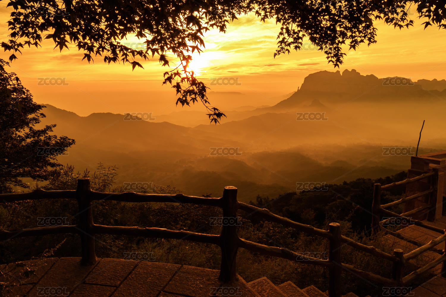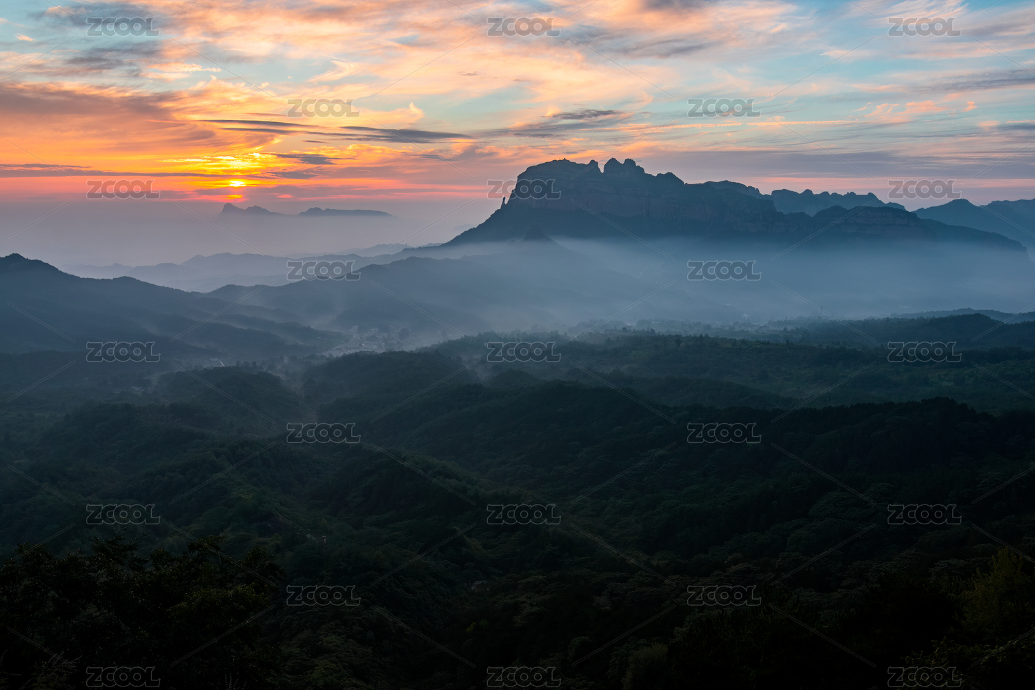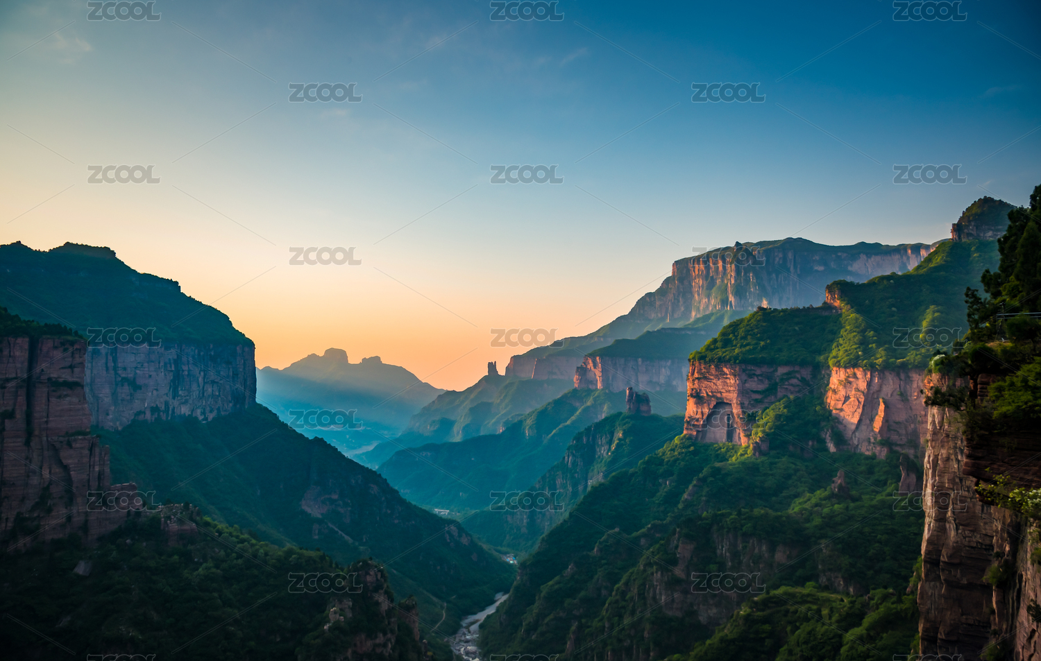 航拍中国山西太行山晨辉中的王莽岭景区入口