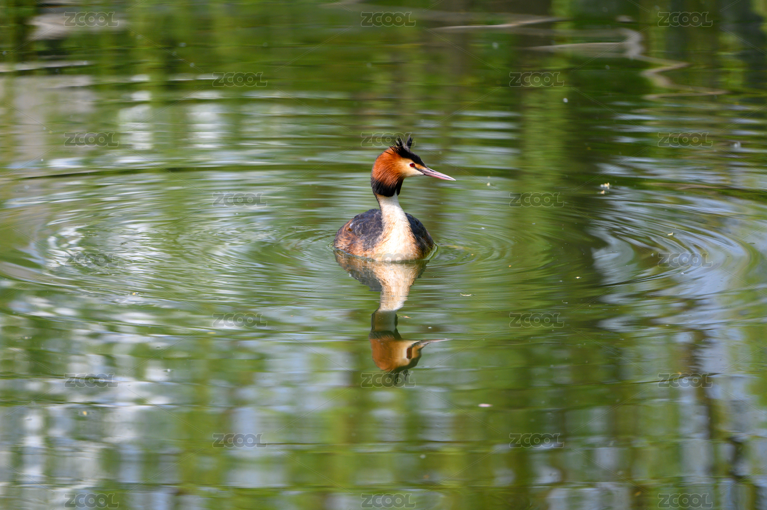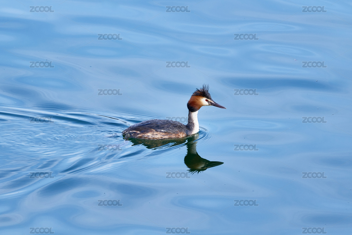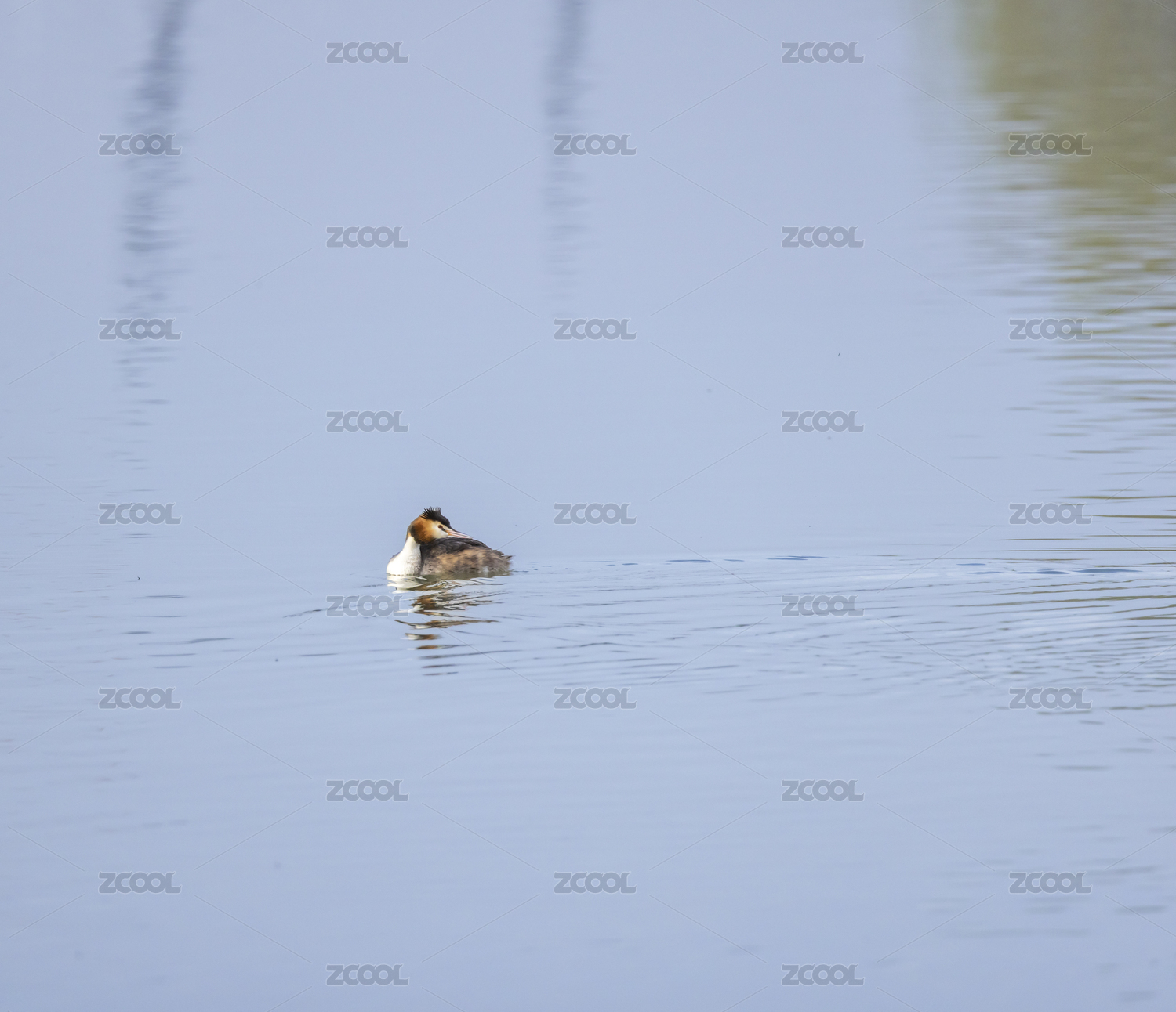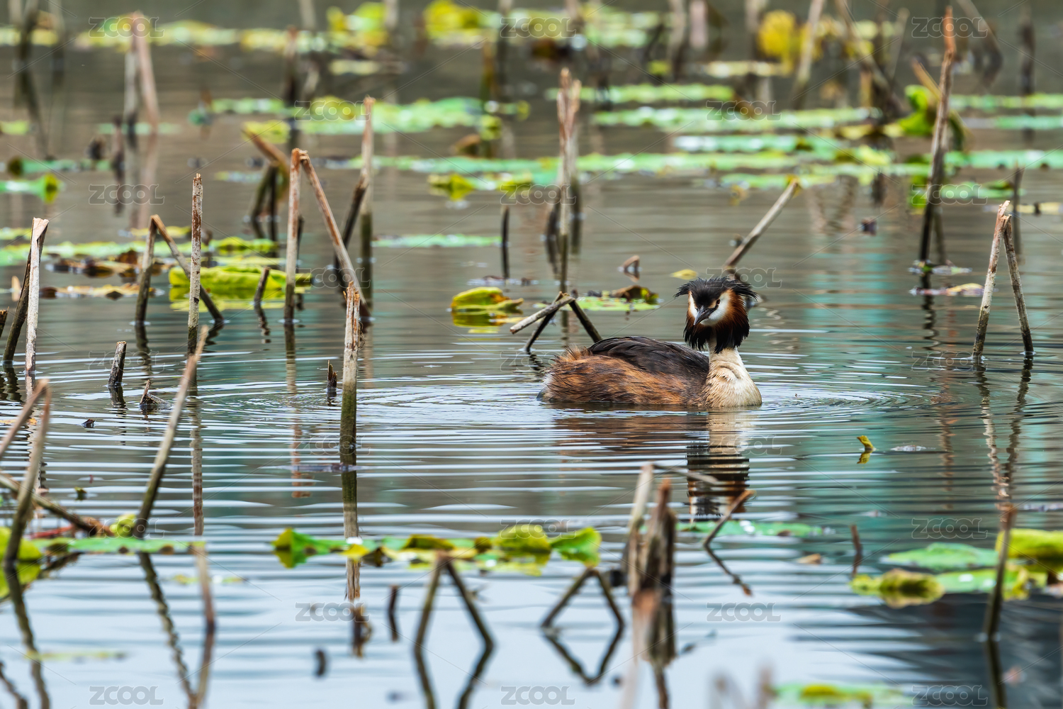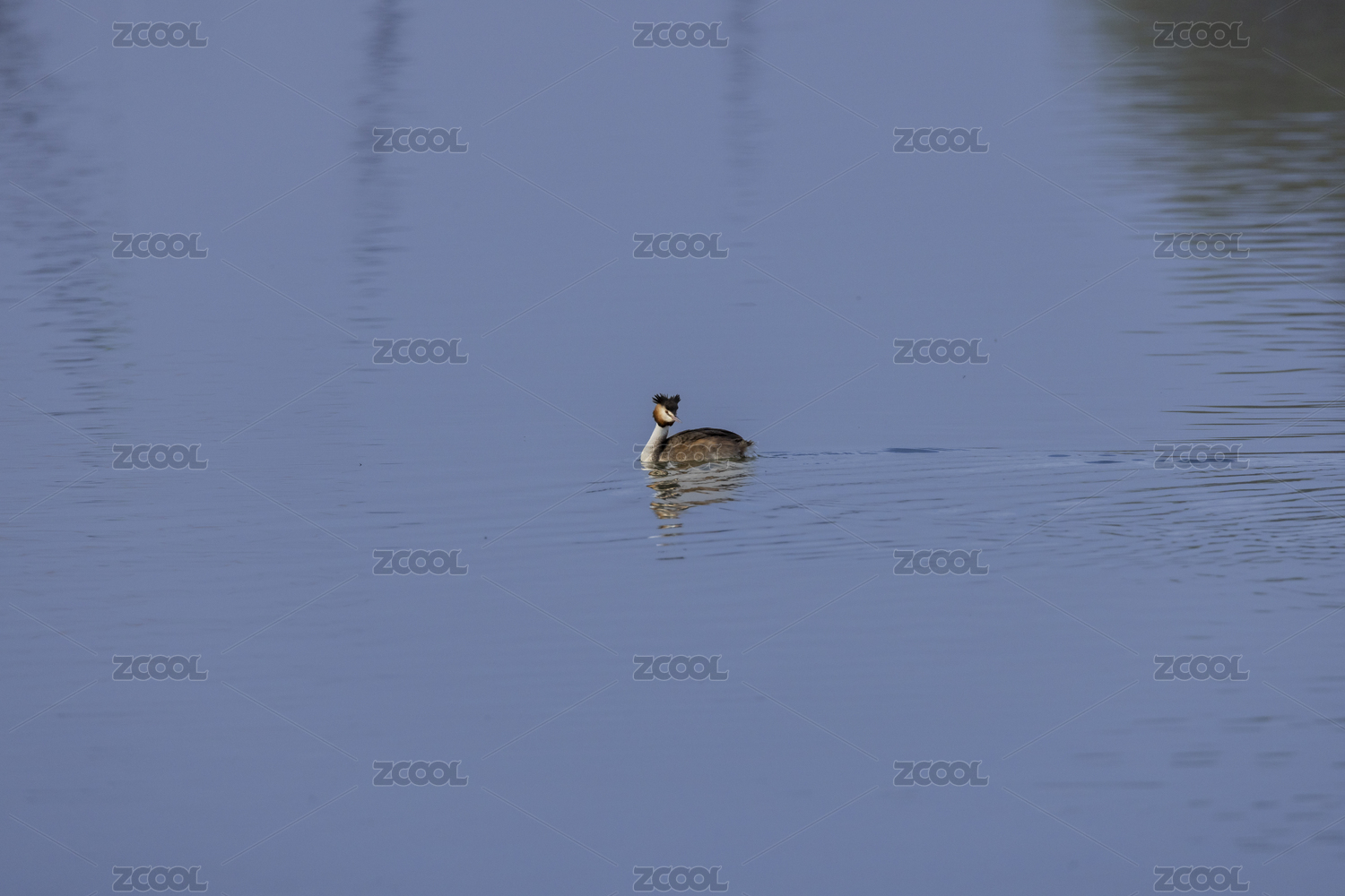 水面上游动的水鸟凤头鸊鷉特写 凤头䴙䴘