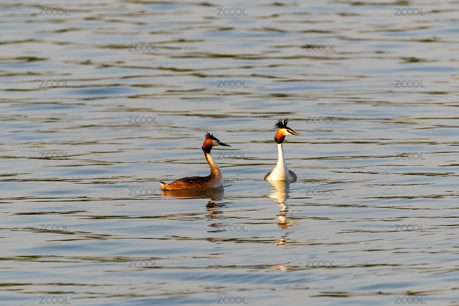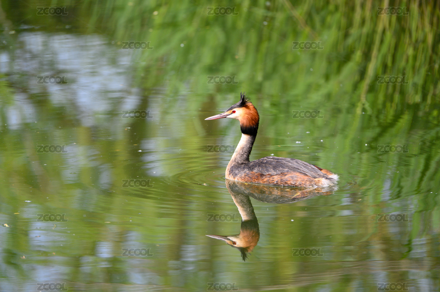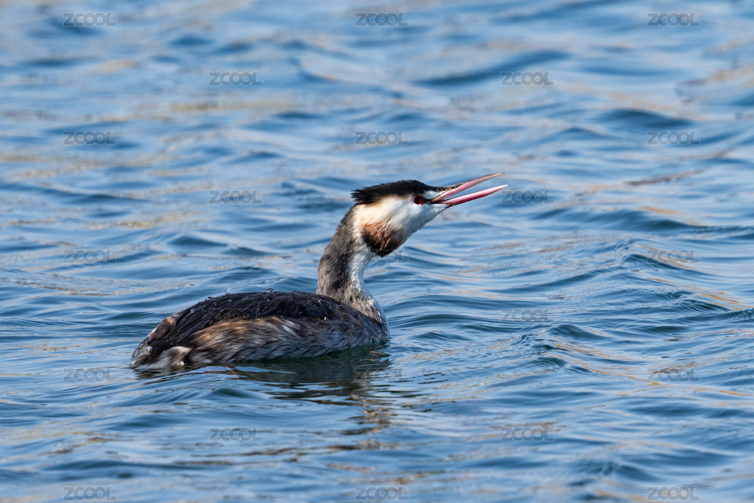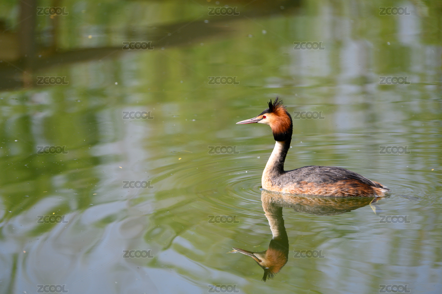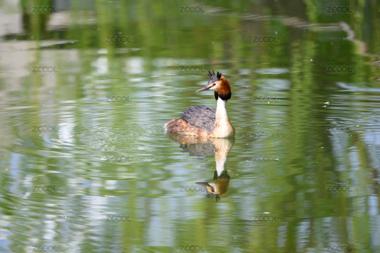 水面上游动的水鸟凤头鸊鷉特写 凤头䴙䴘