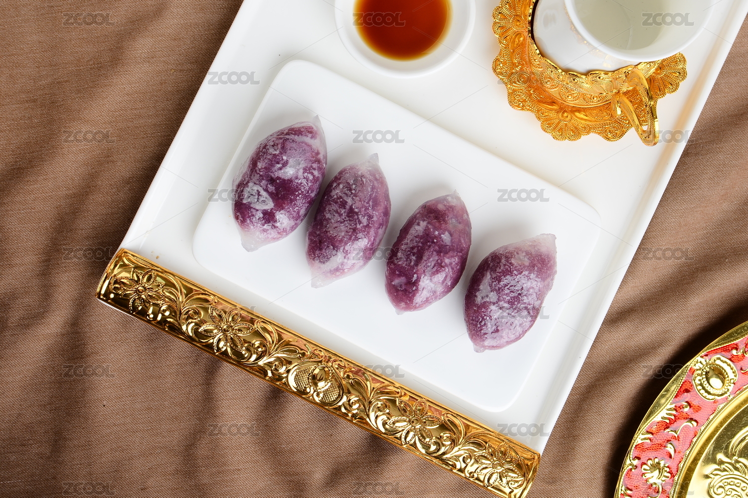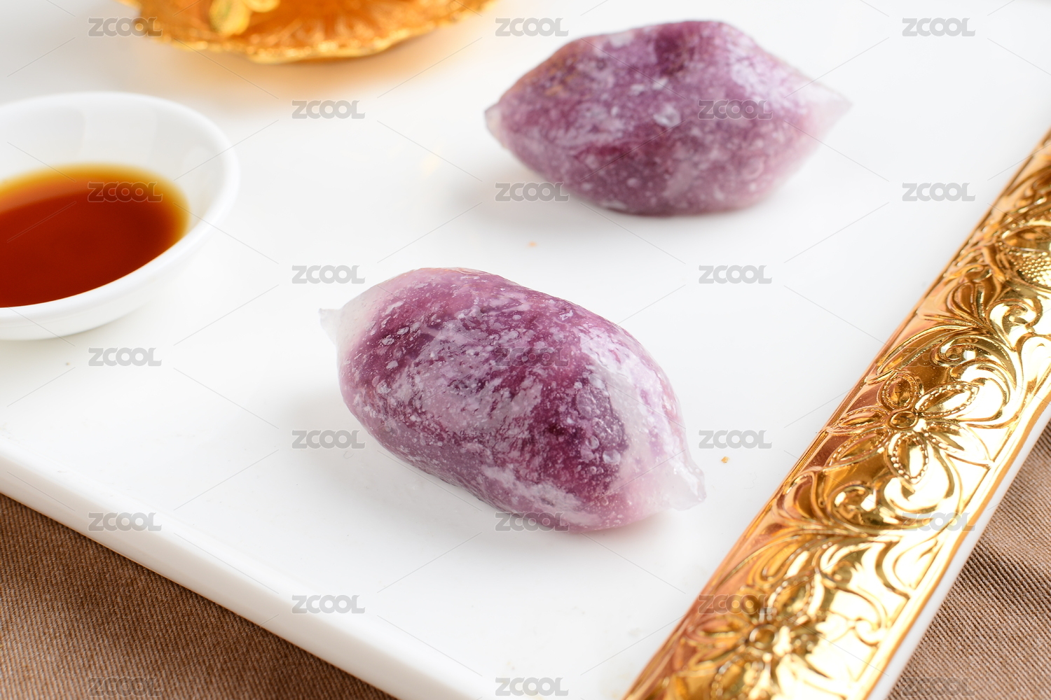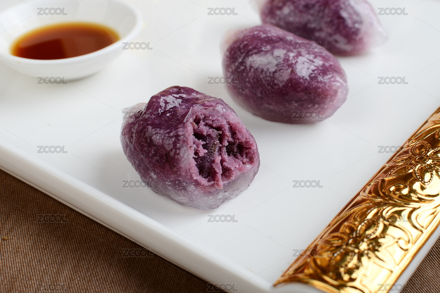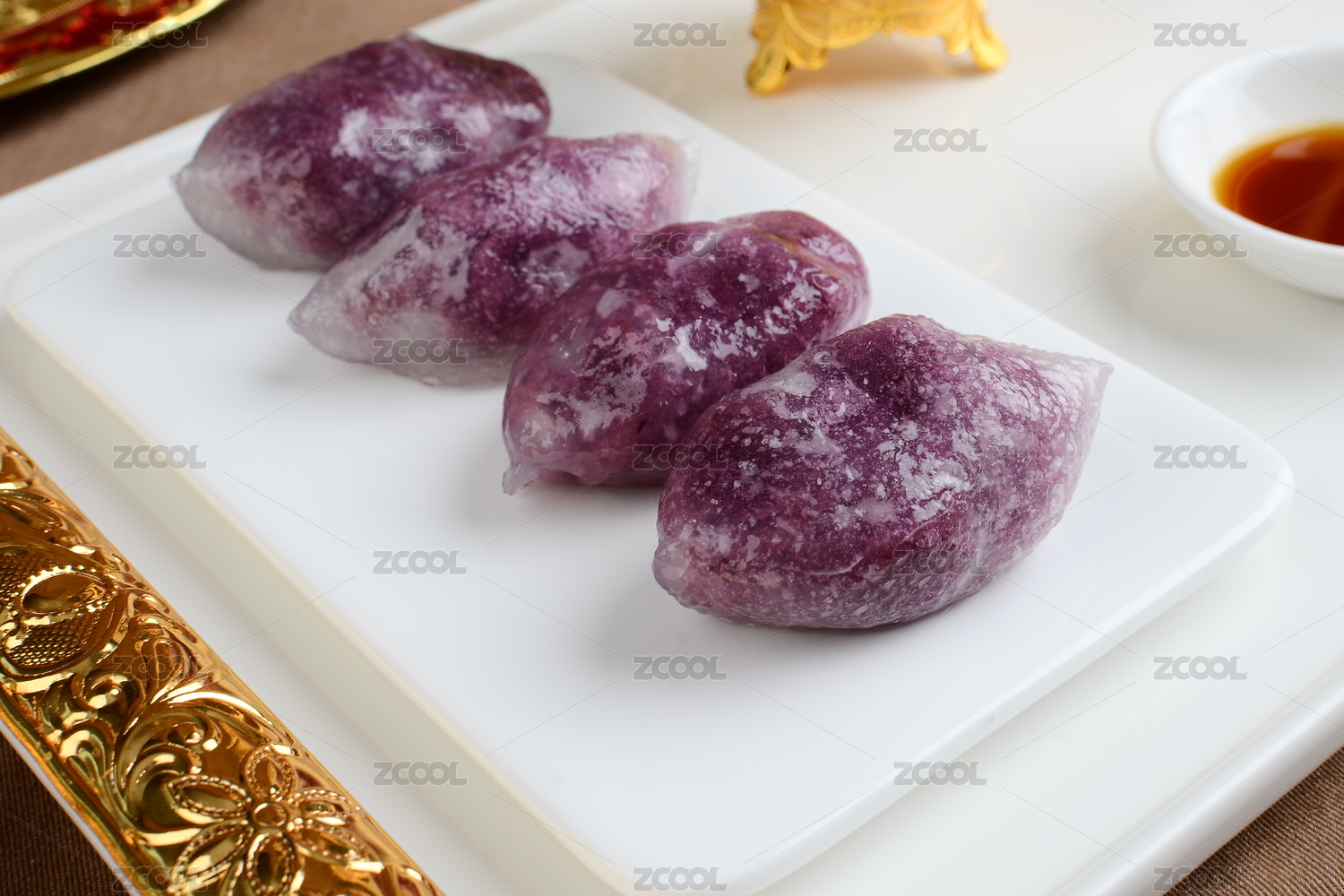 放在桌子上的香芋水晶球水晶粿