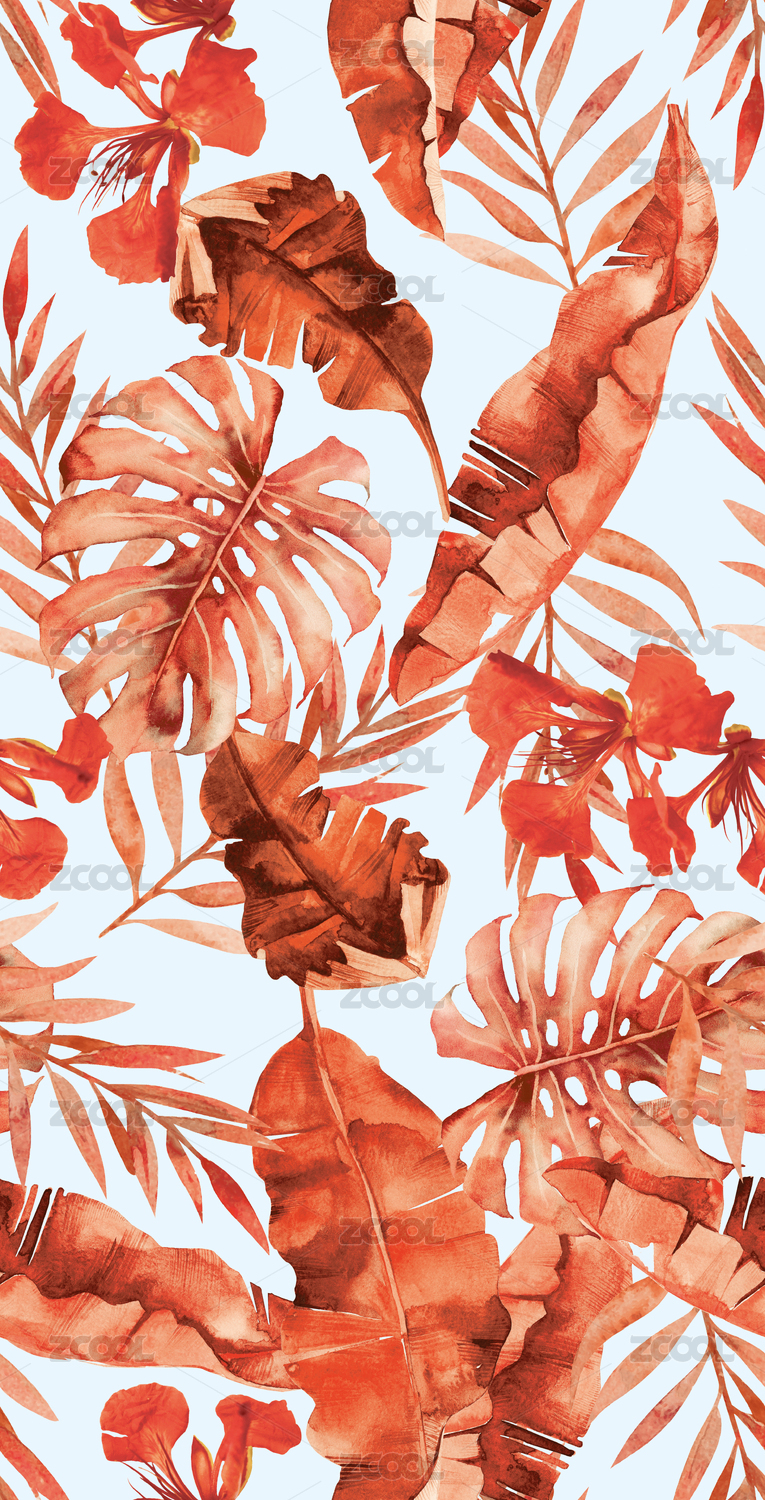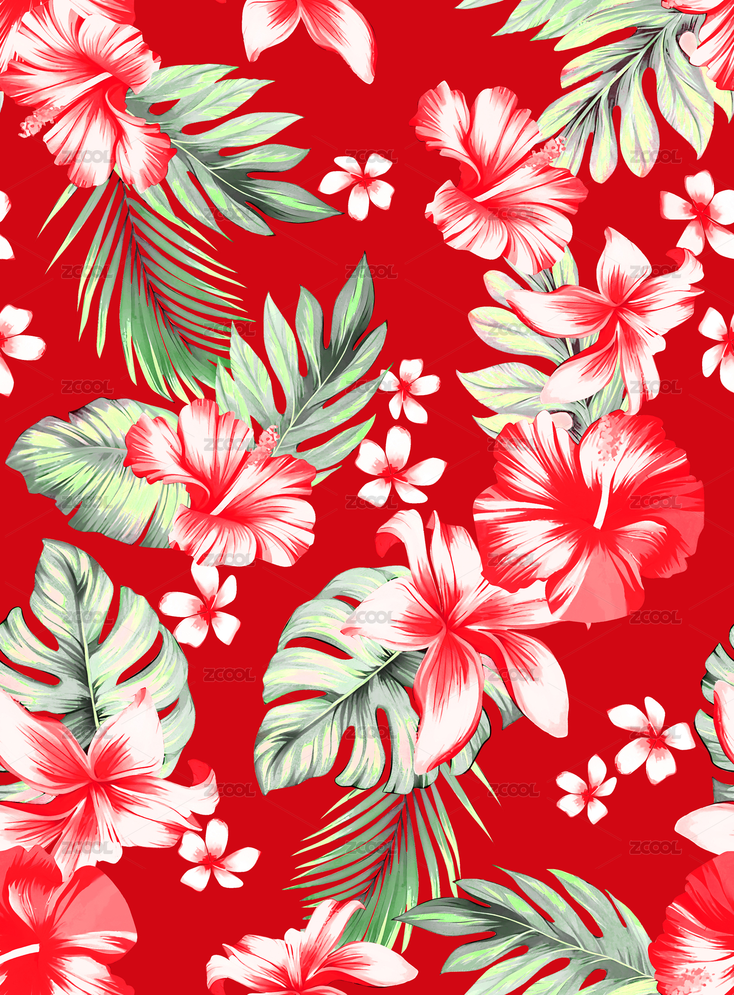 颜色靓丽的大红色的背景的水彩叶鸡蛋花