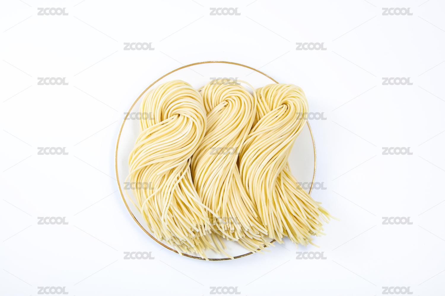 瓷盘子里的生面条