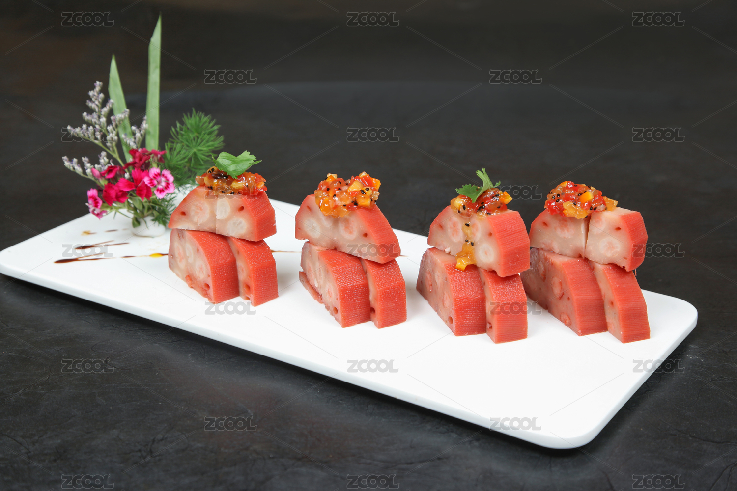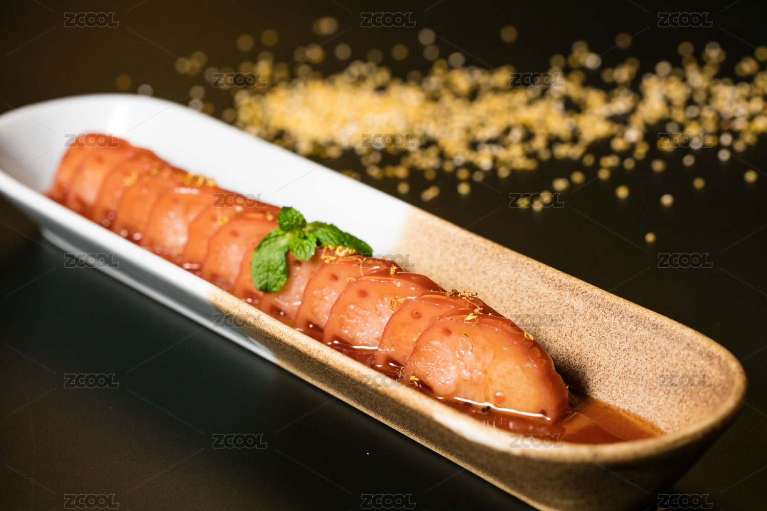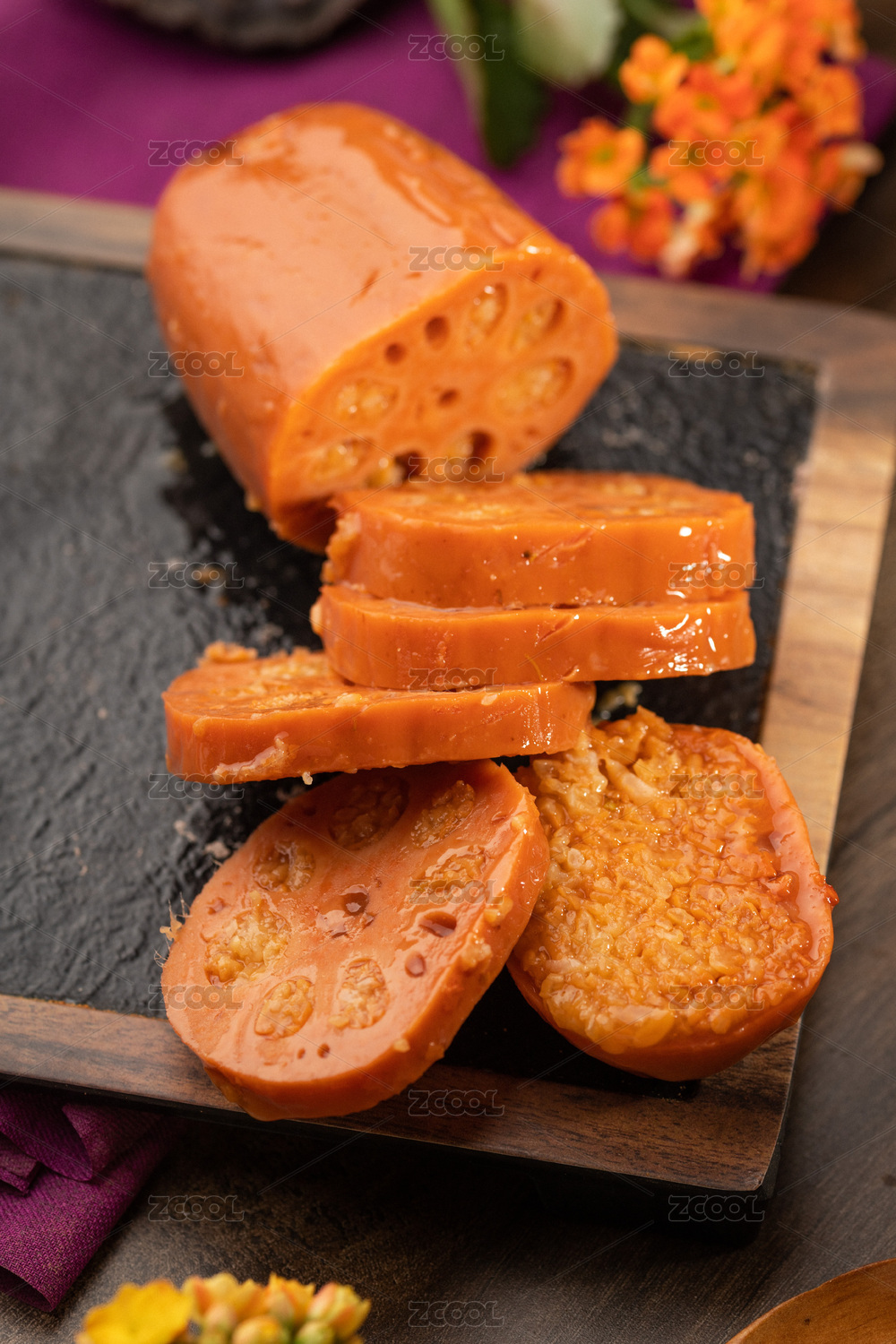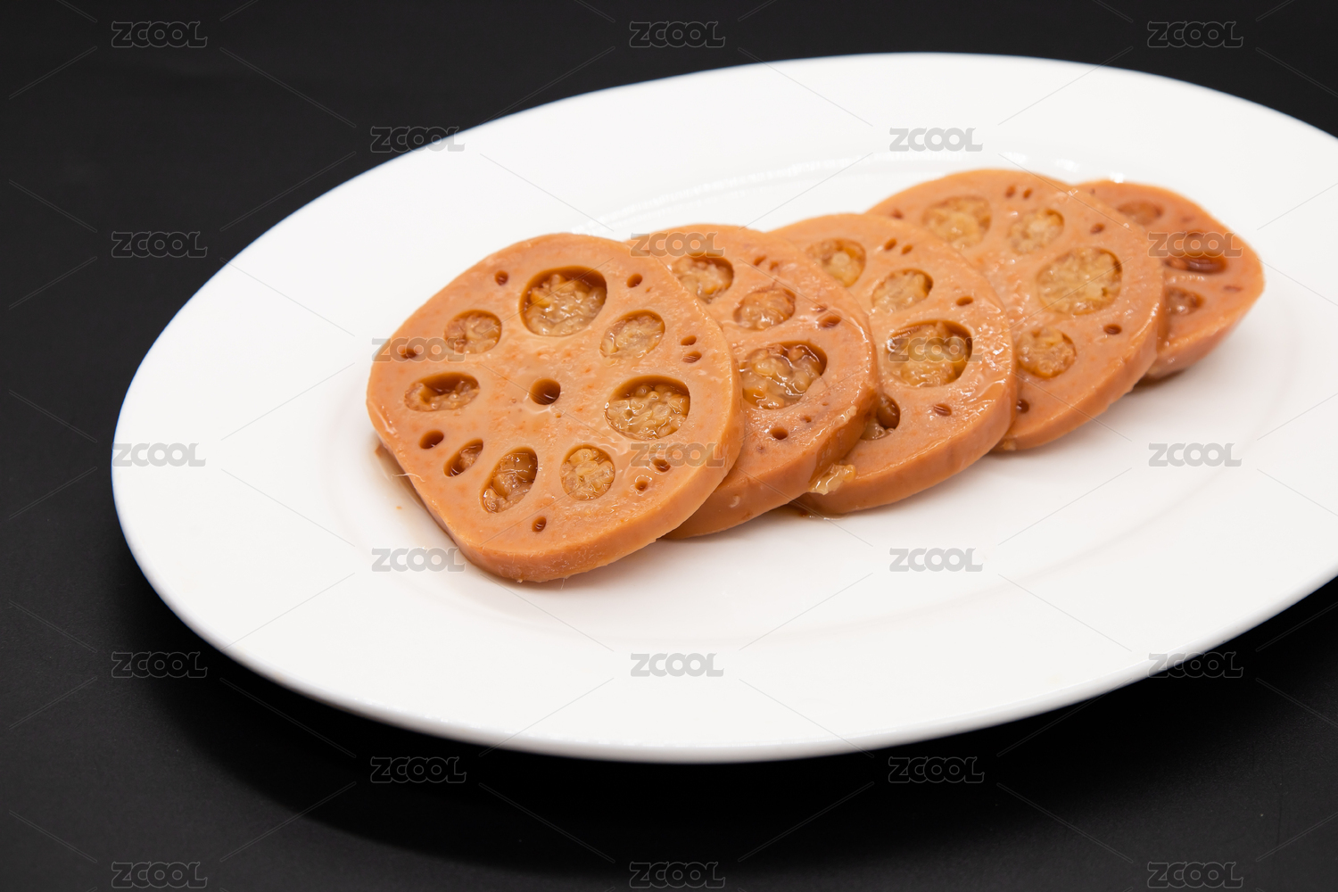 黑色背景一盘桂花糯米藕