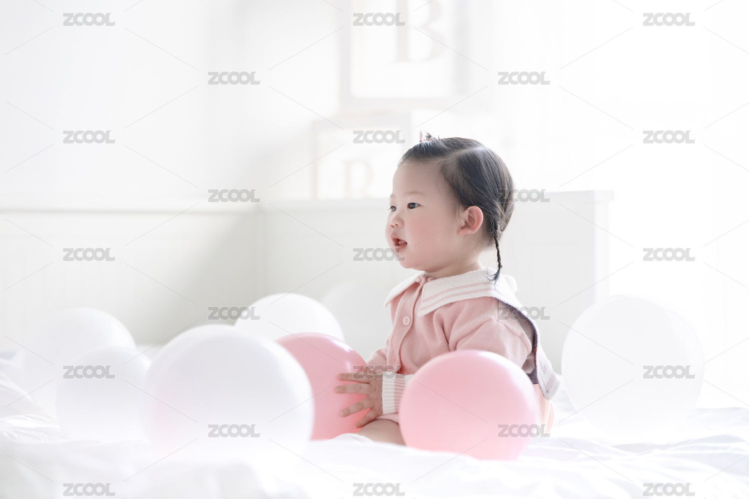 穿着粉色连衣裙拿着一朵红色玫瑰花的女孩