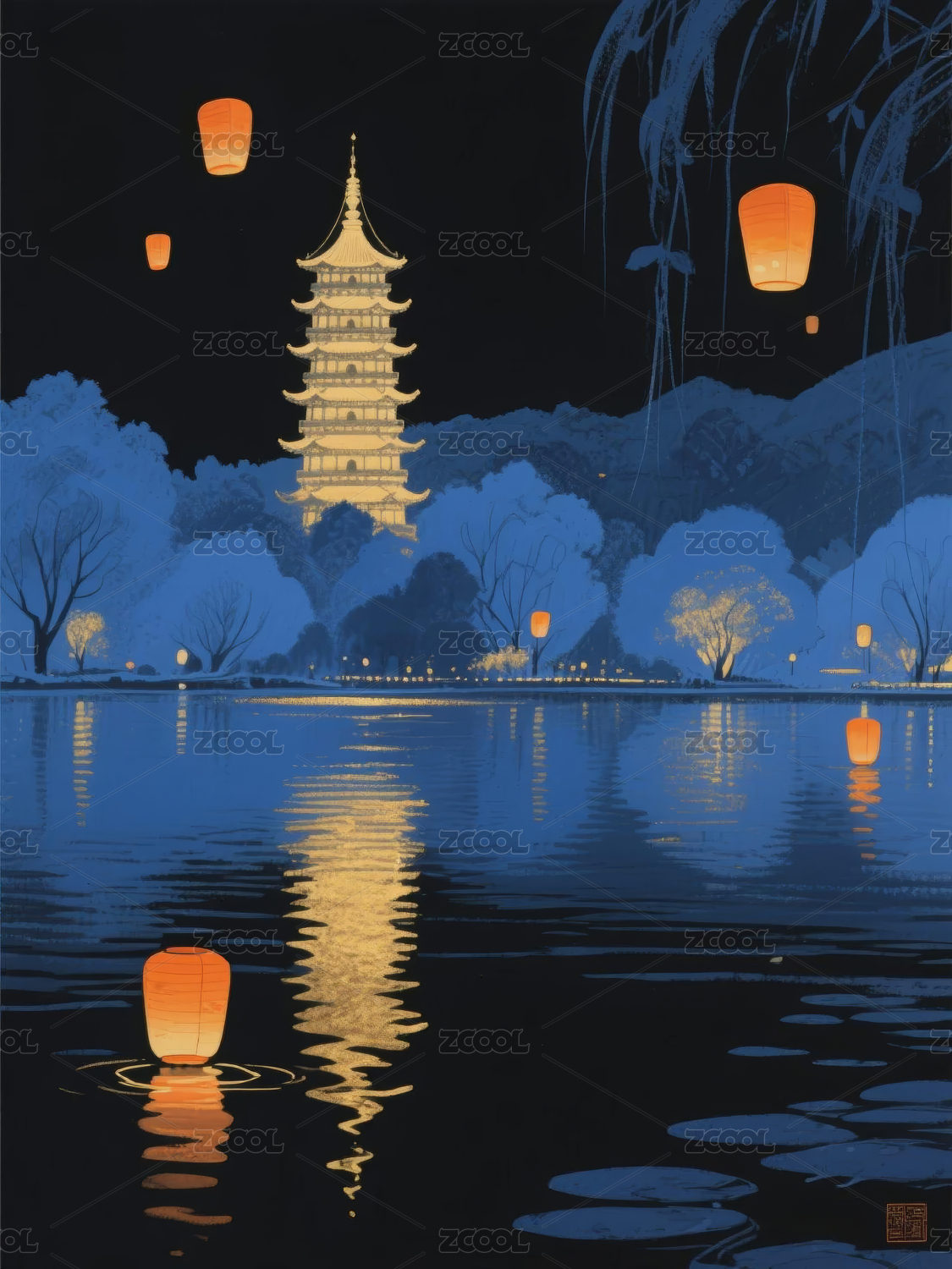 江苏省镇江市金山公园塔影湖中的慈寿塔