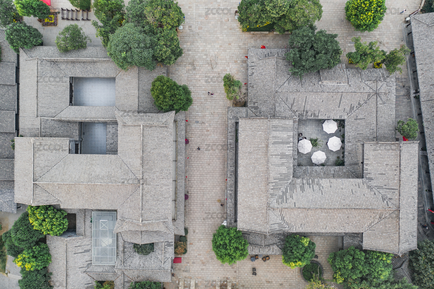 山东省枣庄市台儿庄古城的清晨航拍