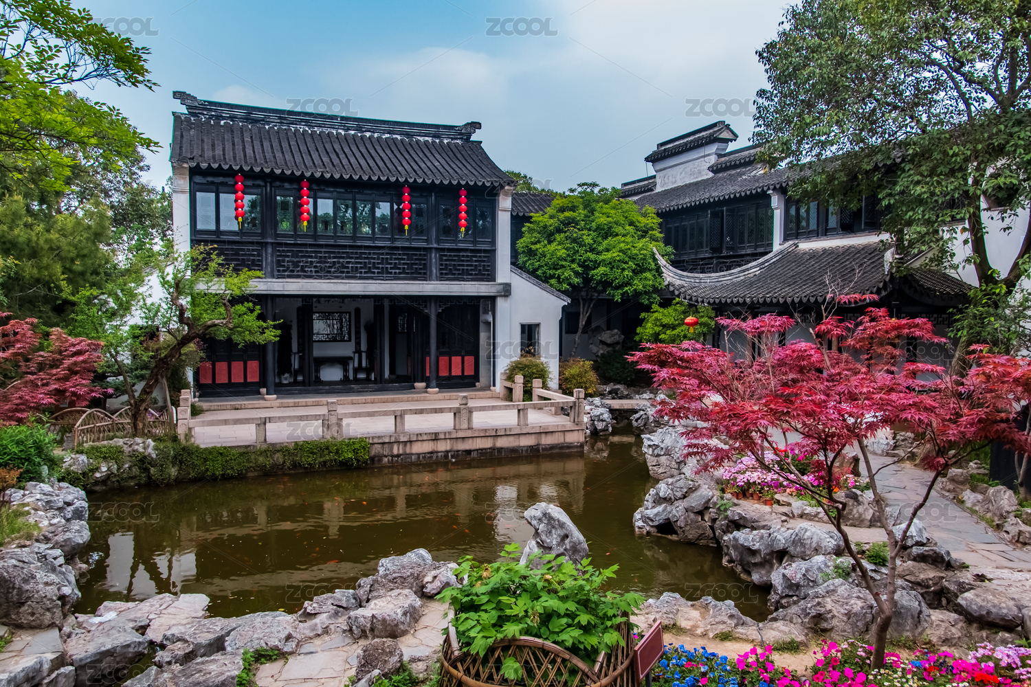 中国江苏省苏州市木渎镇严家花园园林建筑