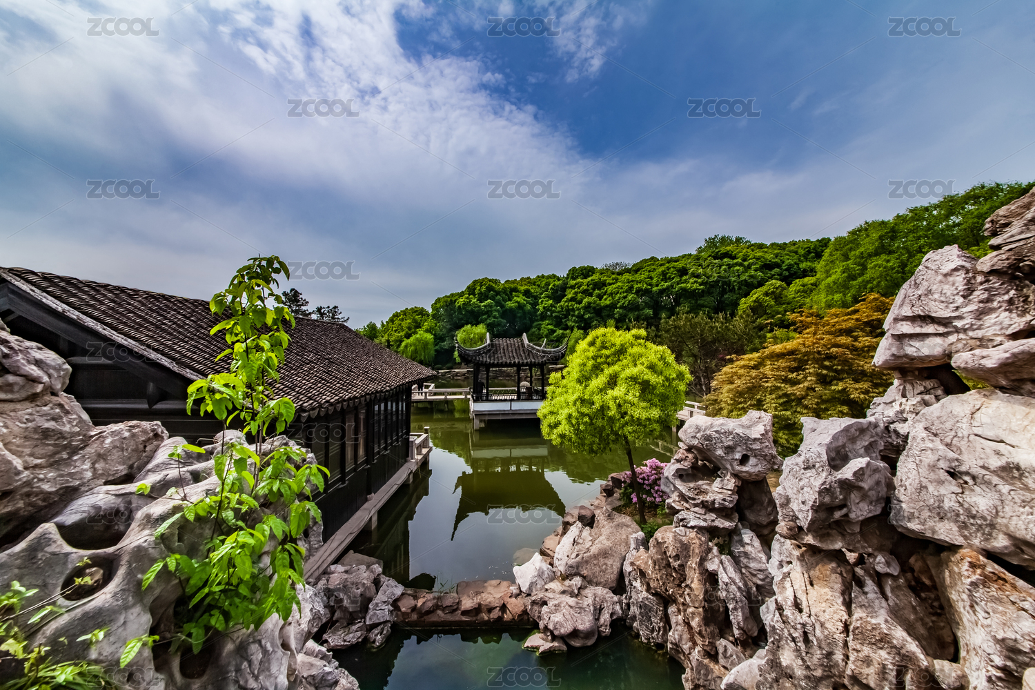 中国江苏省苏州市木渎镇灵岩山放生池建筑