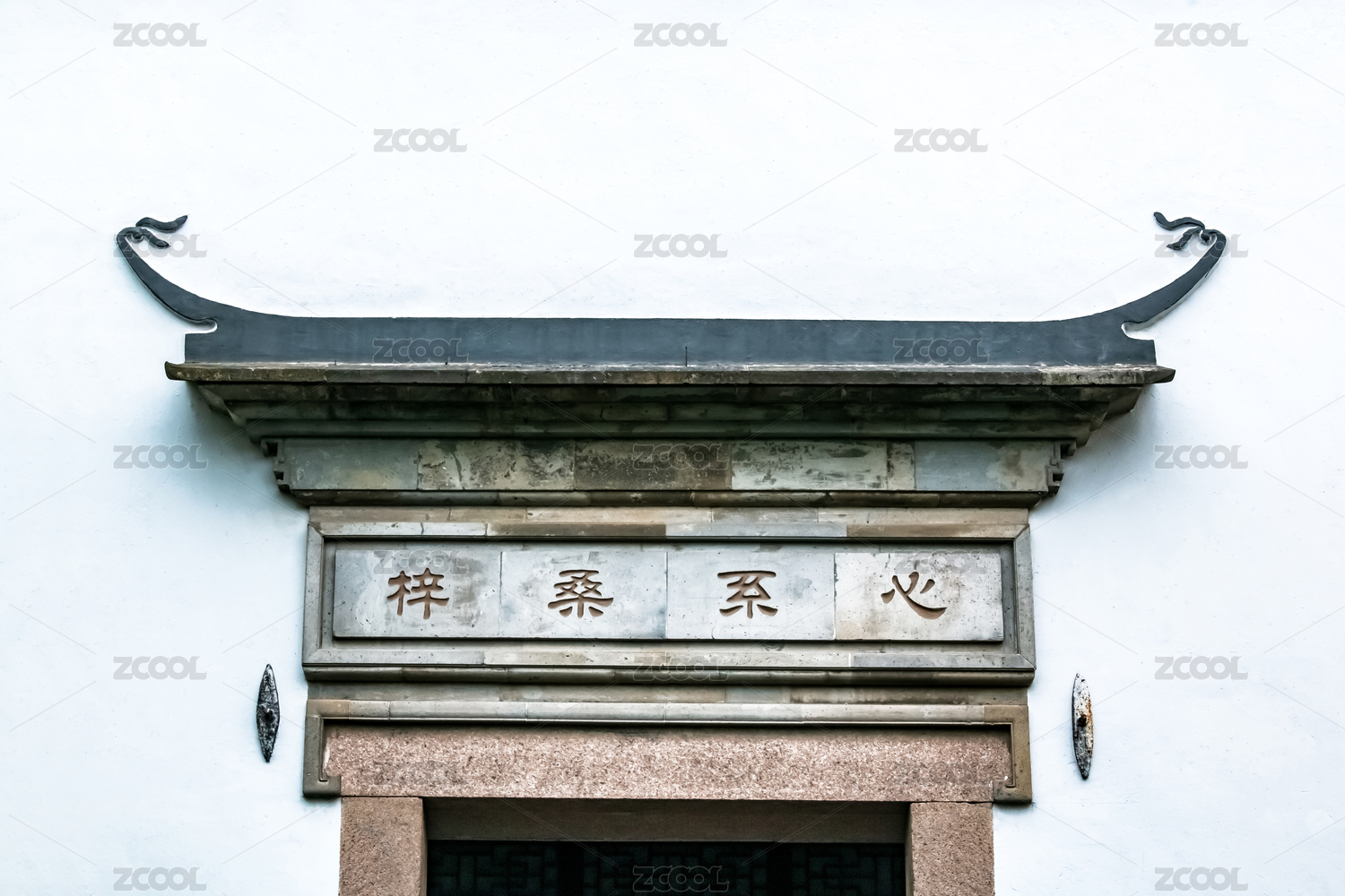中国江苏省苏州市木渎镇虹饮山房门楣装饰