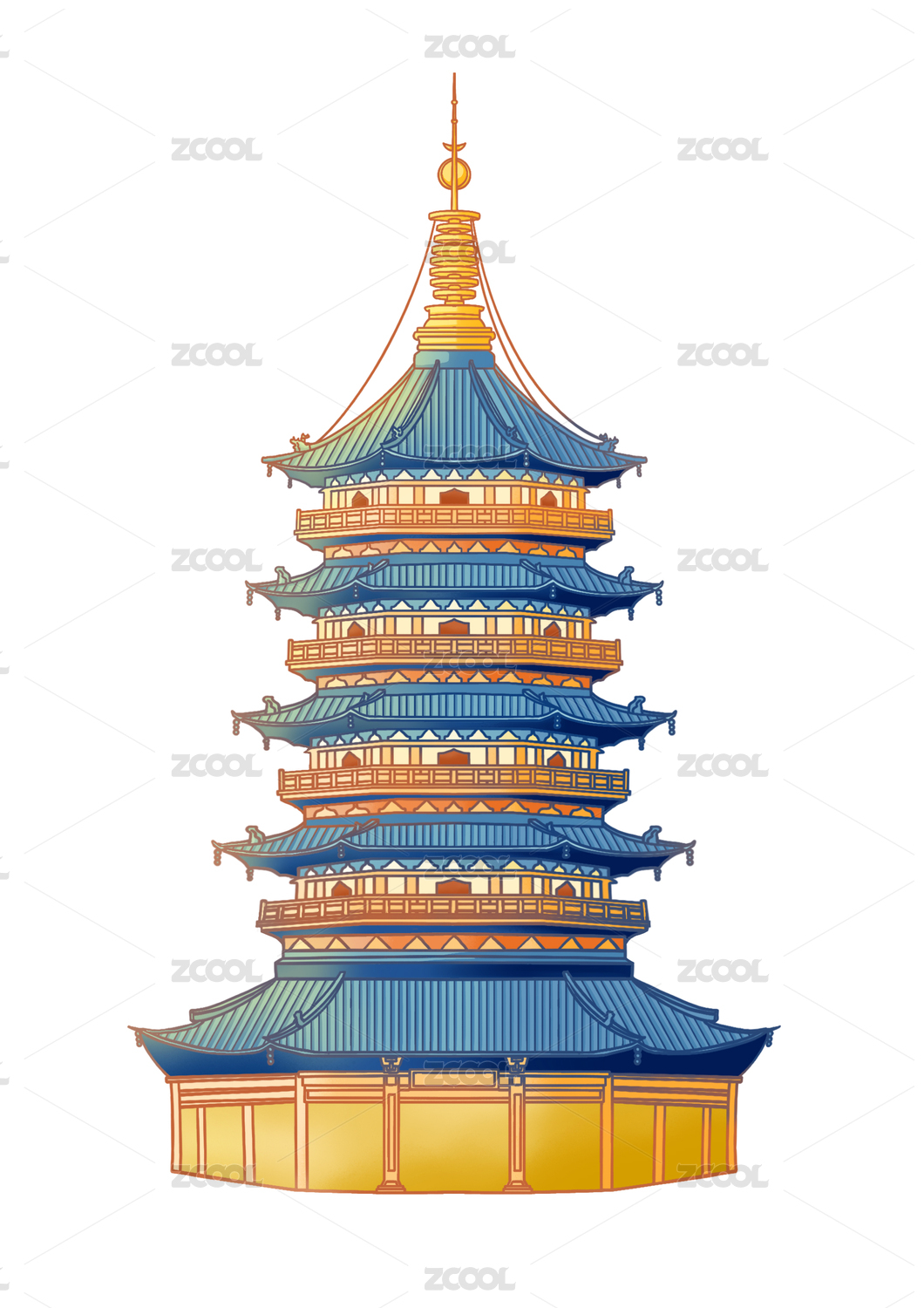 雷锋塔国风插画