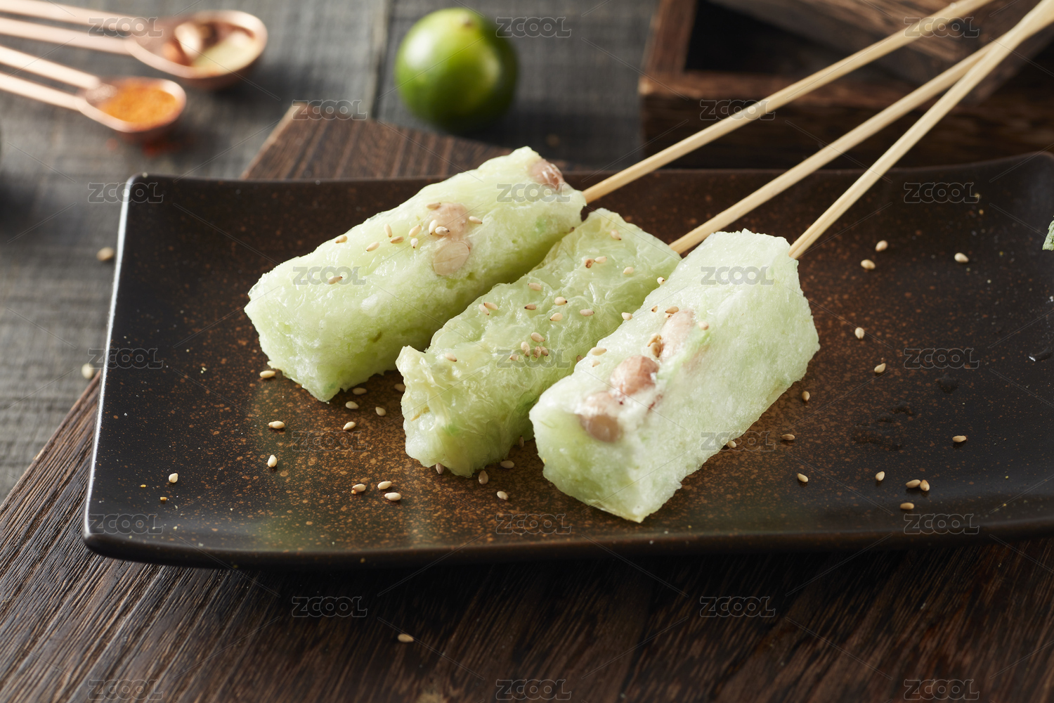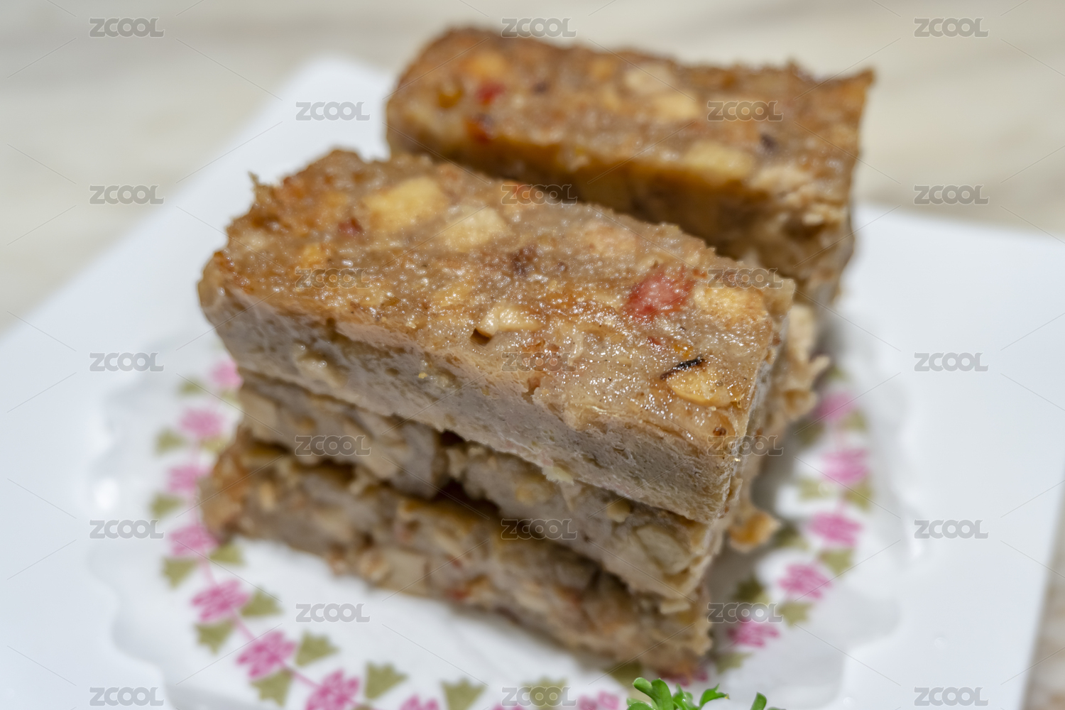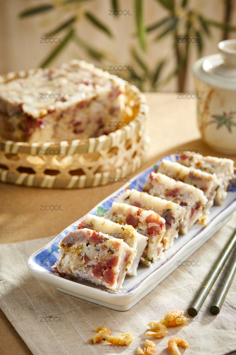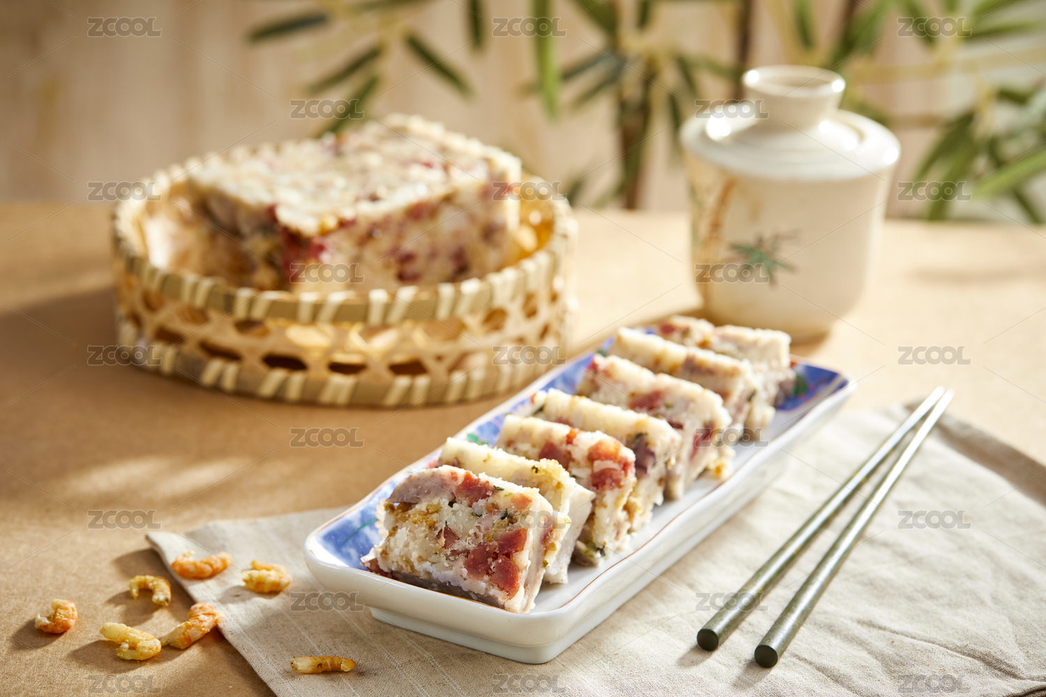 一张有云纹元素的烧鸭和芋头糕插画设计