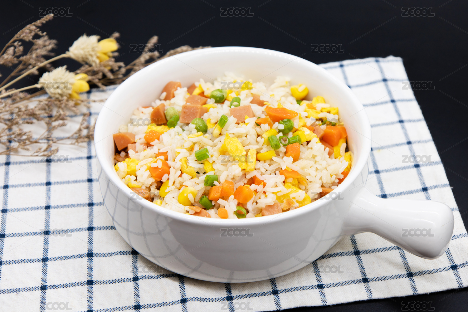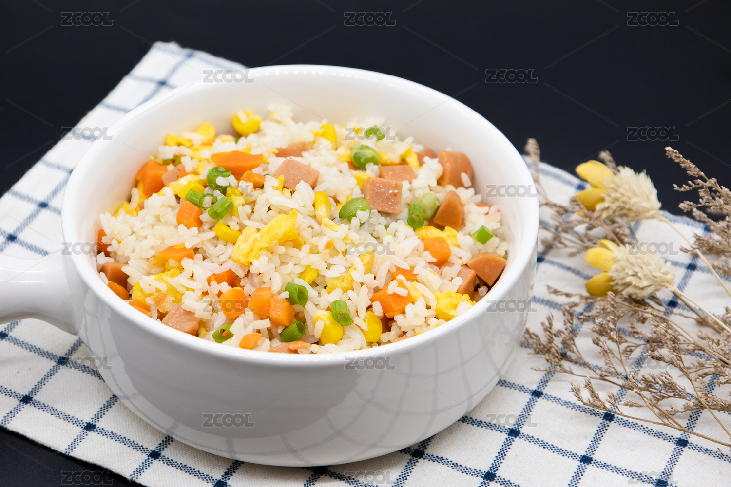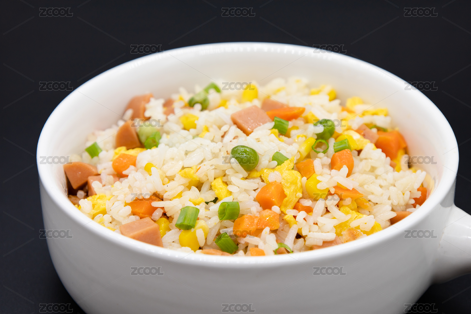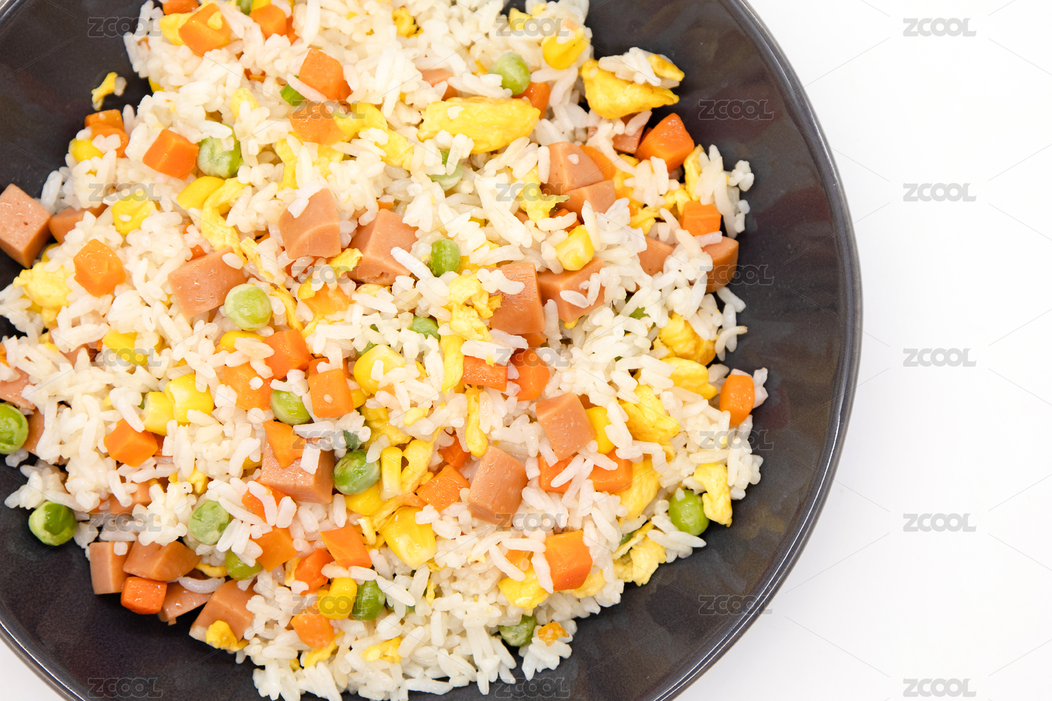 黑色背景中式炒饭杨州炒饭特写