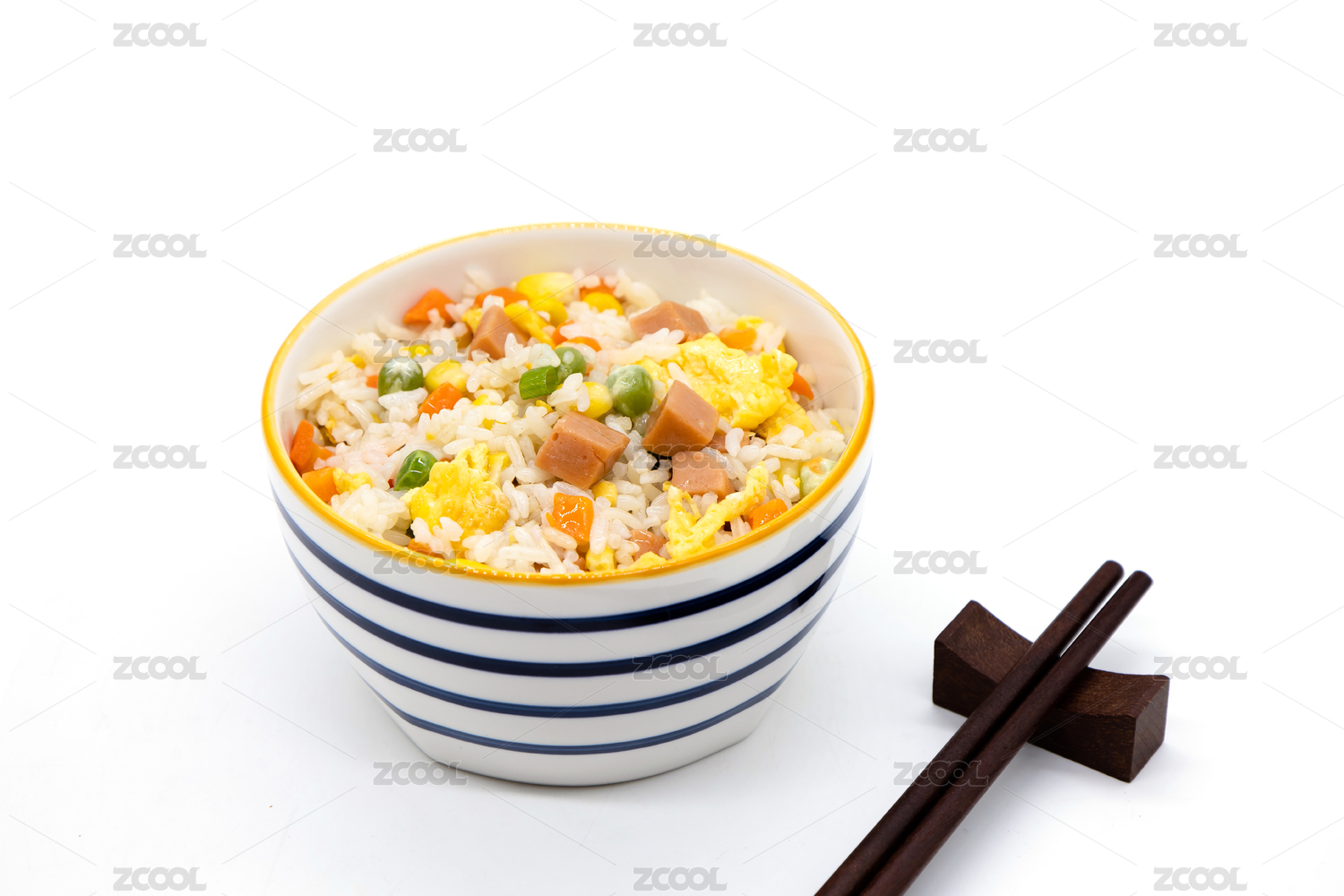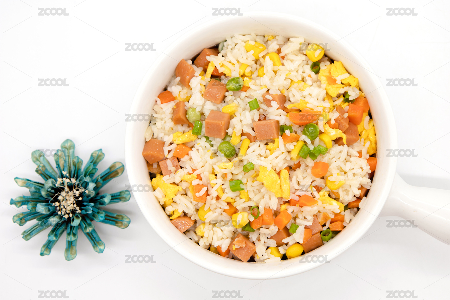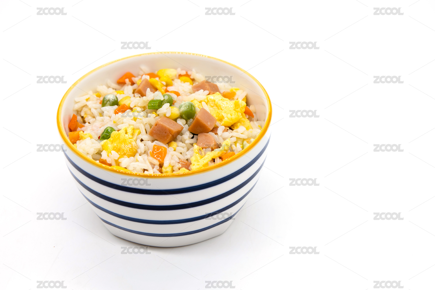 白色背景中式炒饭杨州炒饭特写