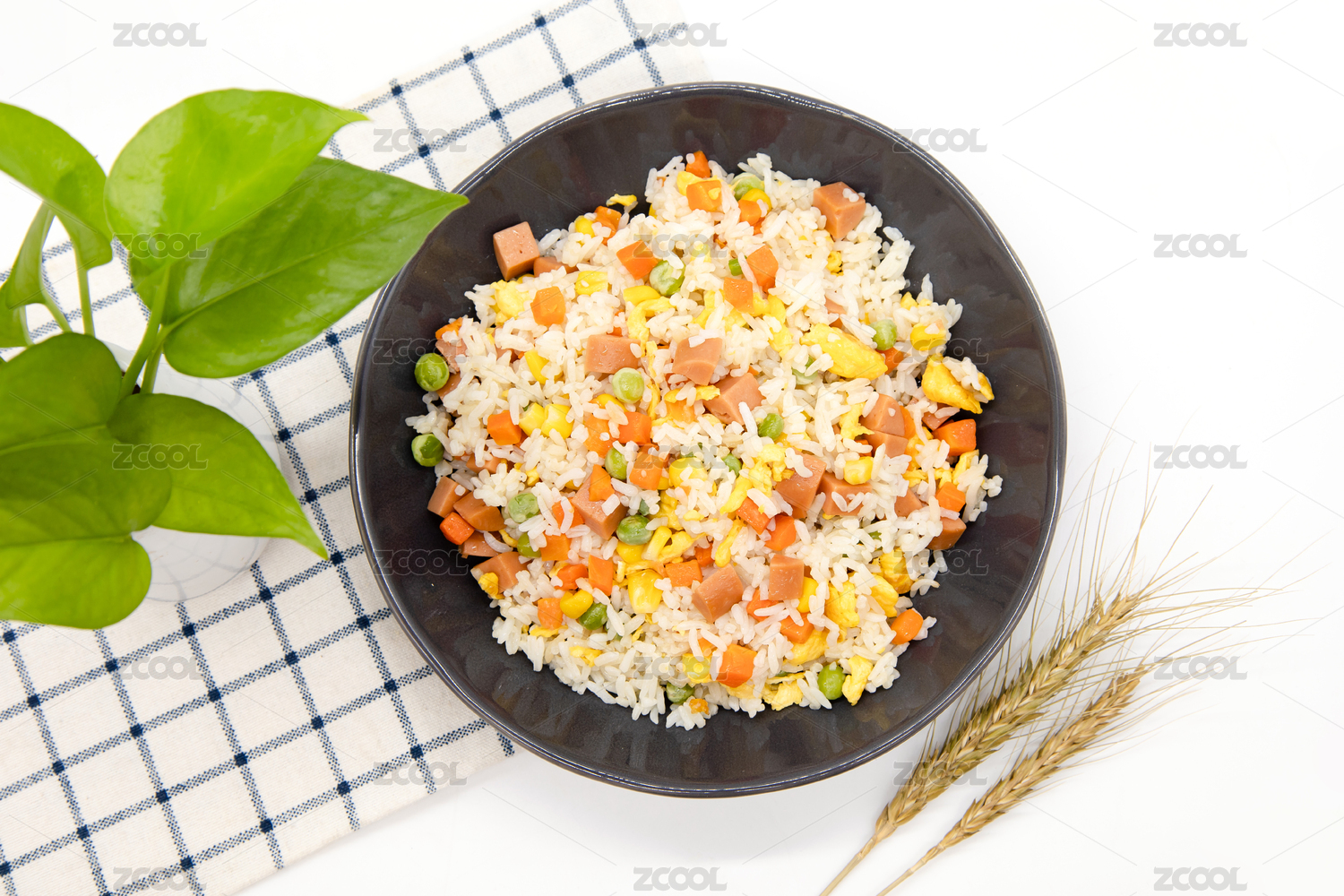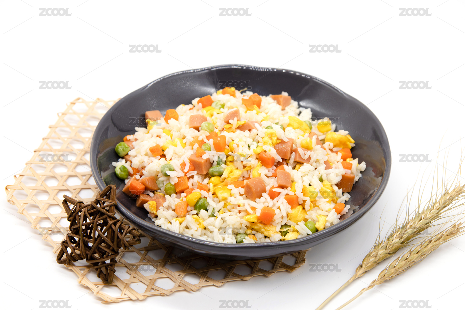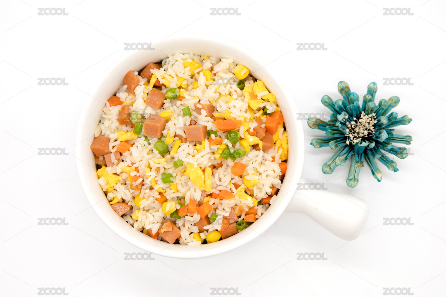 白色背景中式炒饭杨州炒饭特写