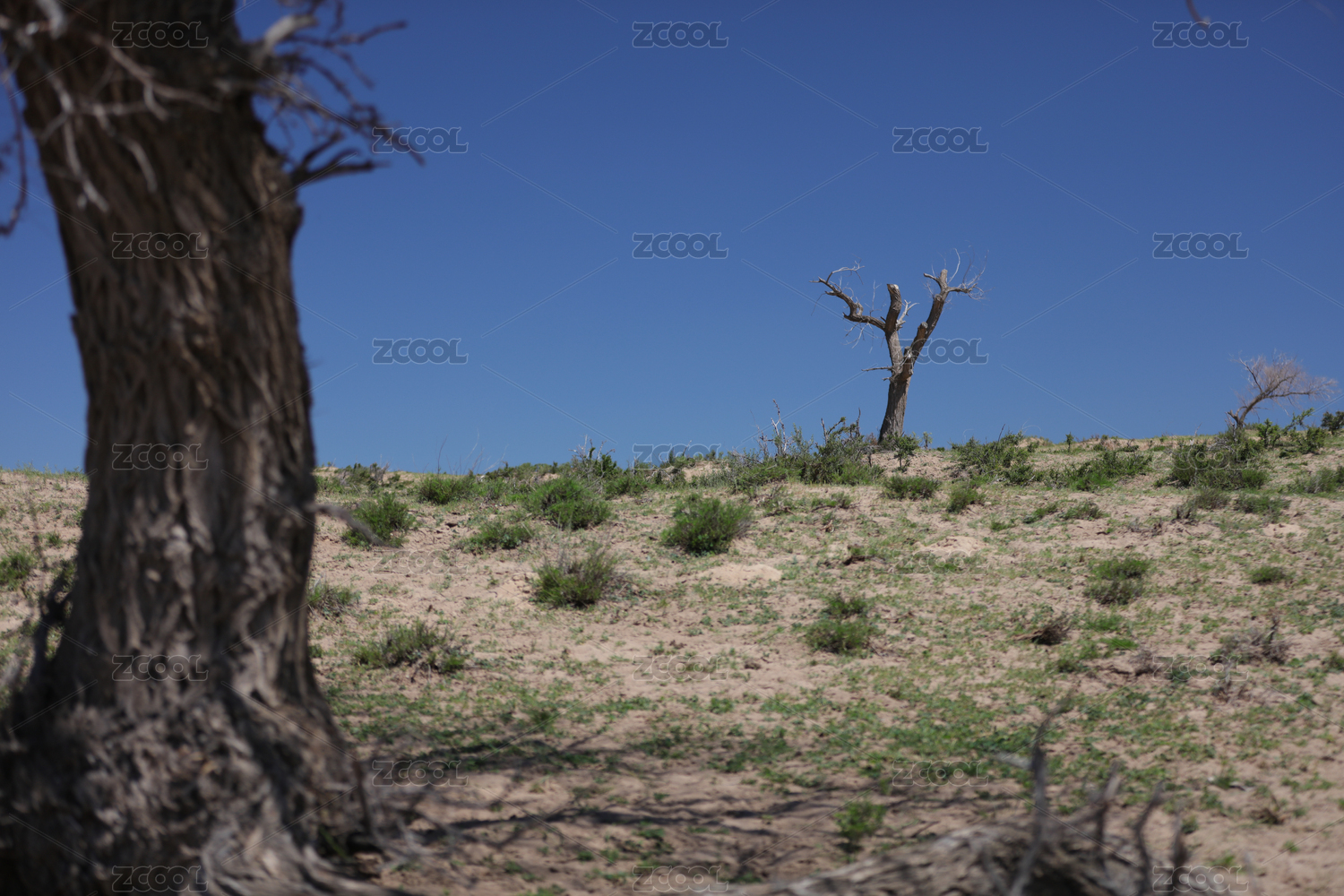 浑善达克沙地上枯萎的胡杨树