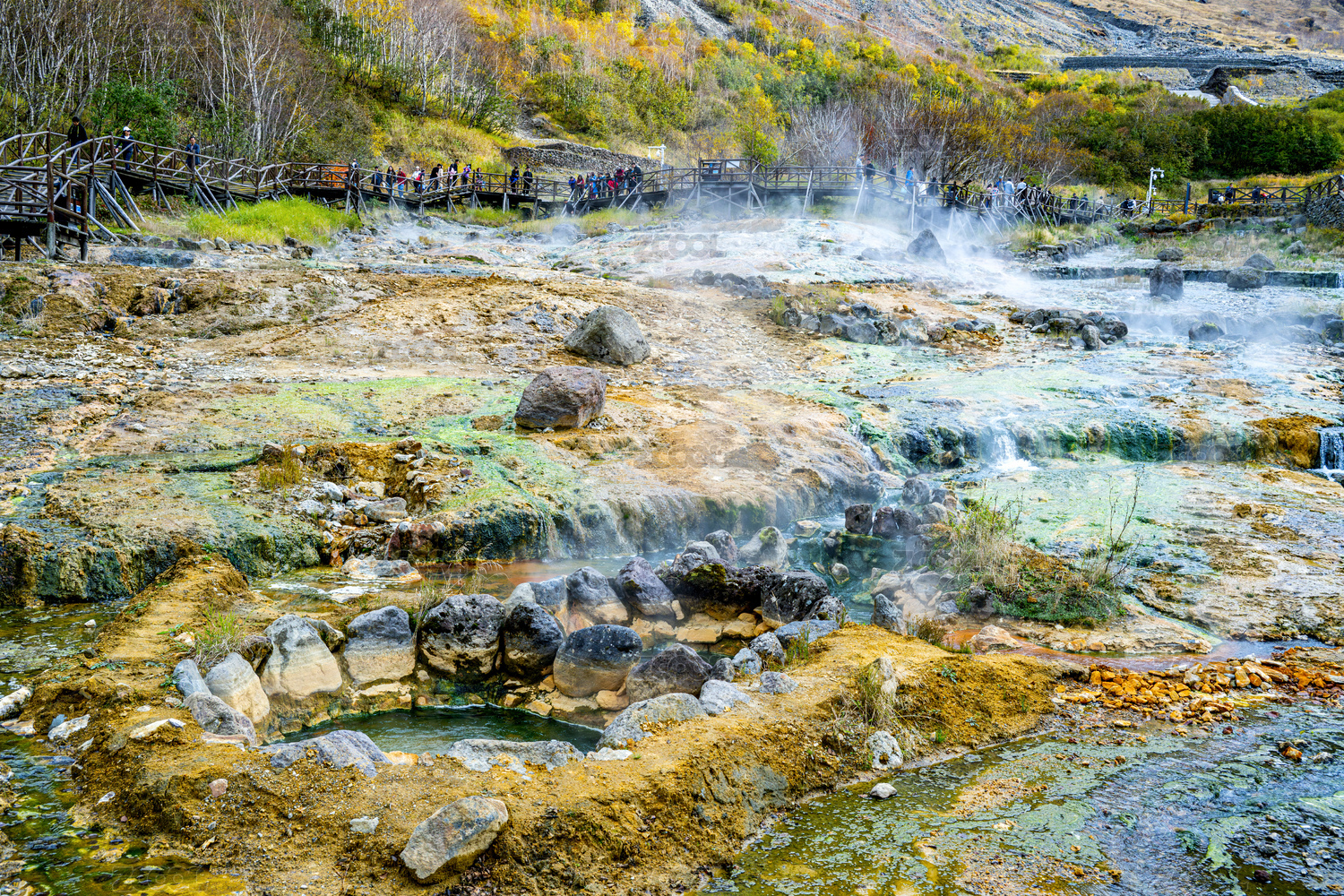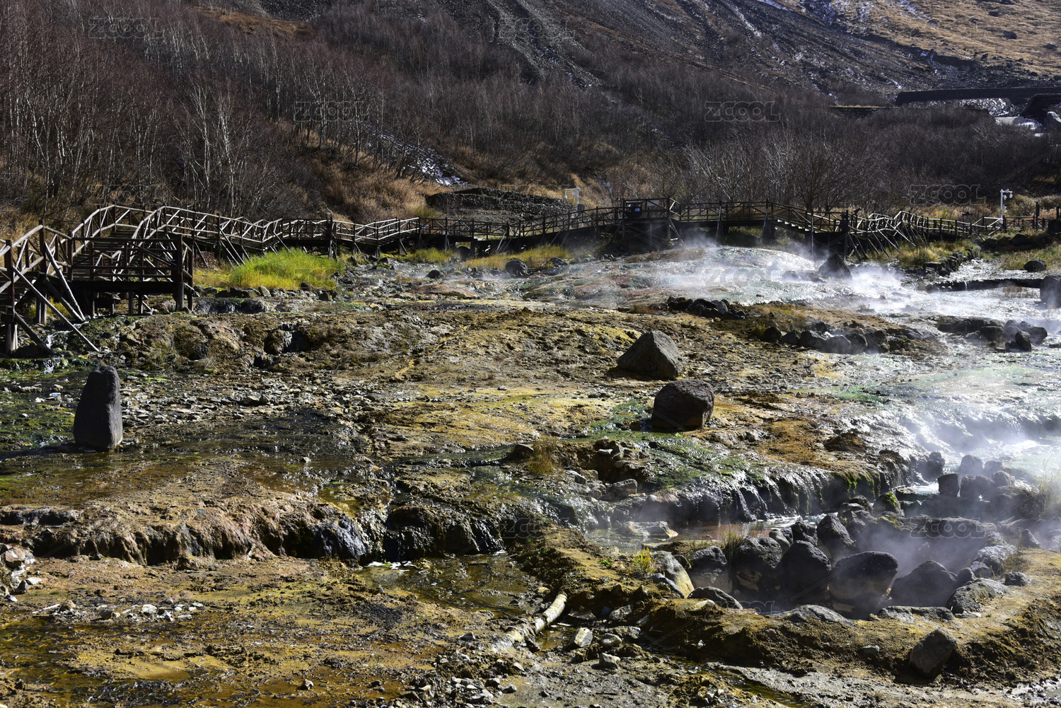 吉林省长白山天池景区聚龙泉温泉秋景