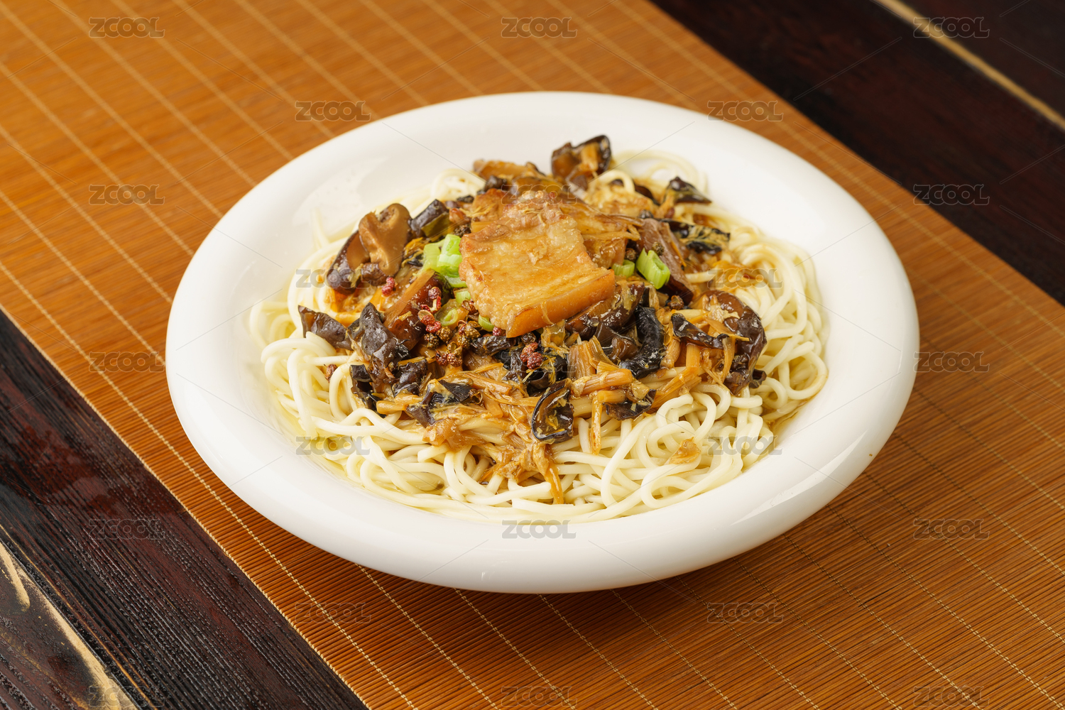 竹底上放着一碗香菇鸡蛋面