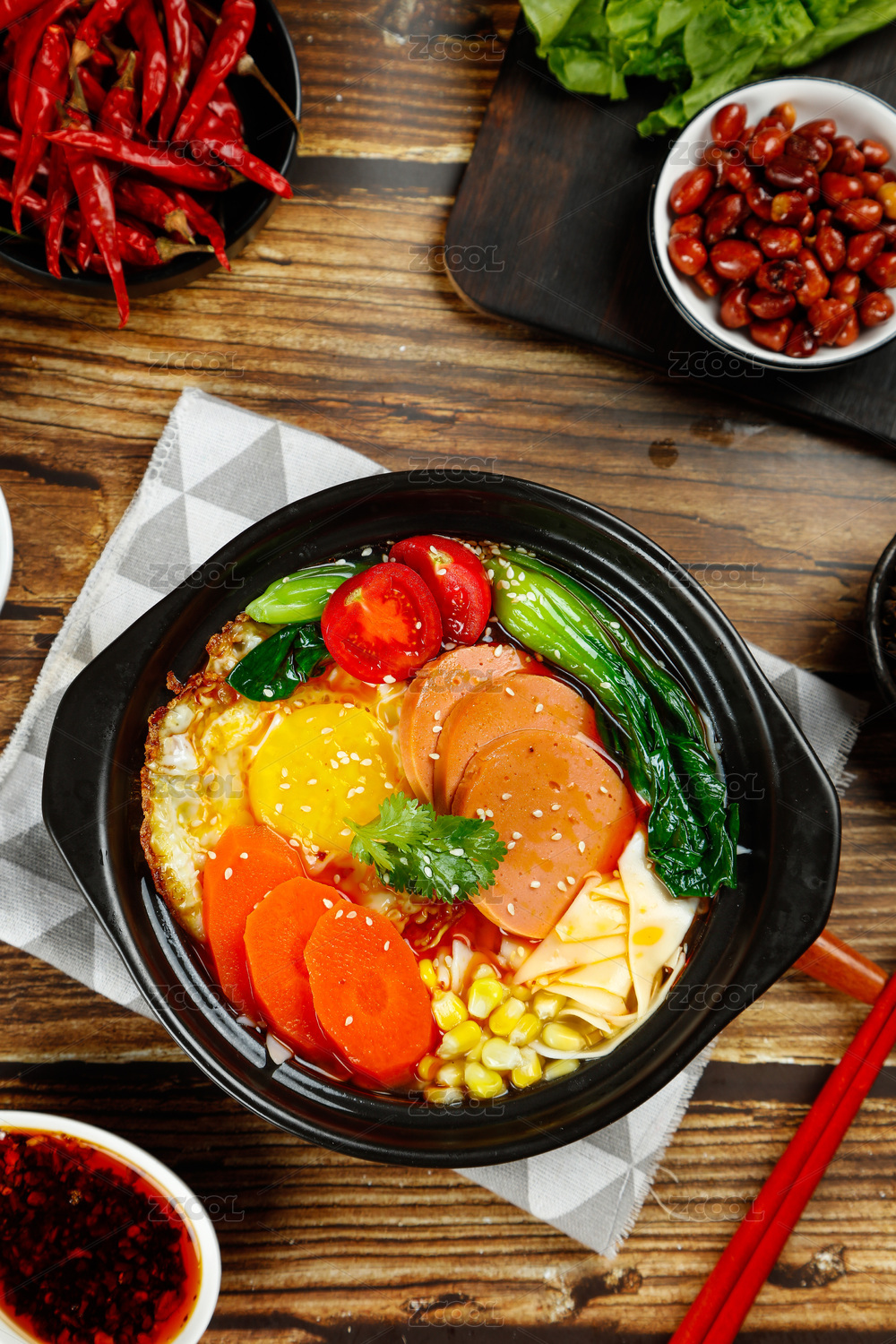 木底上放着一碗砂锅三鲜面