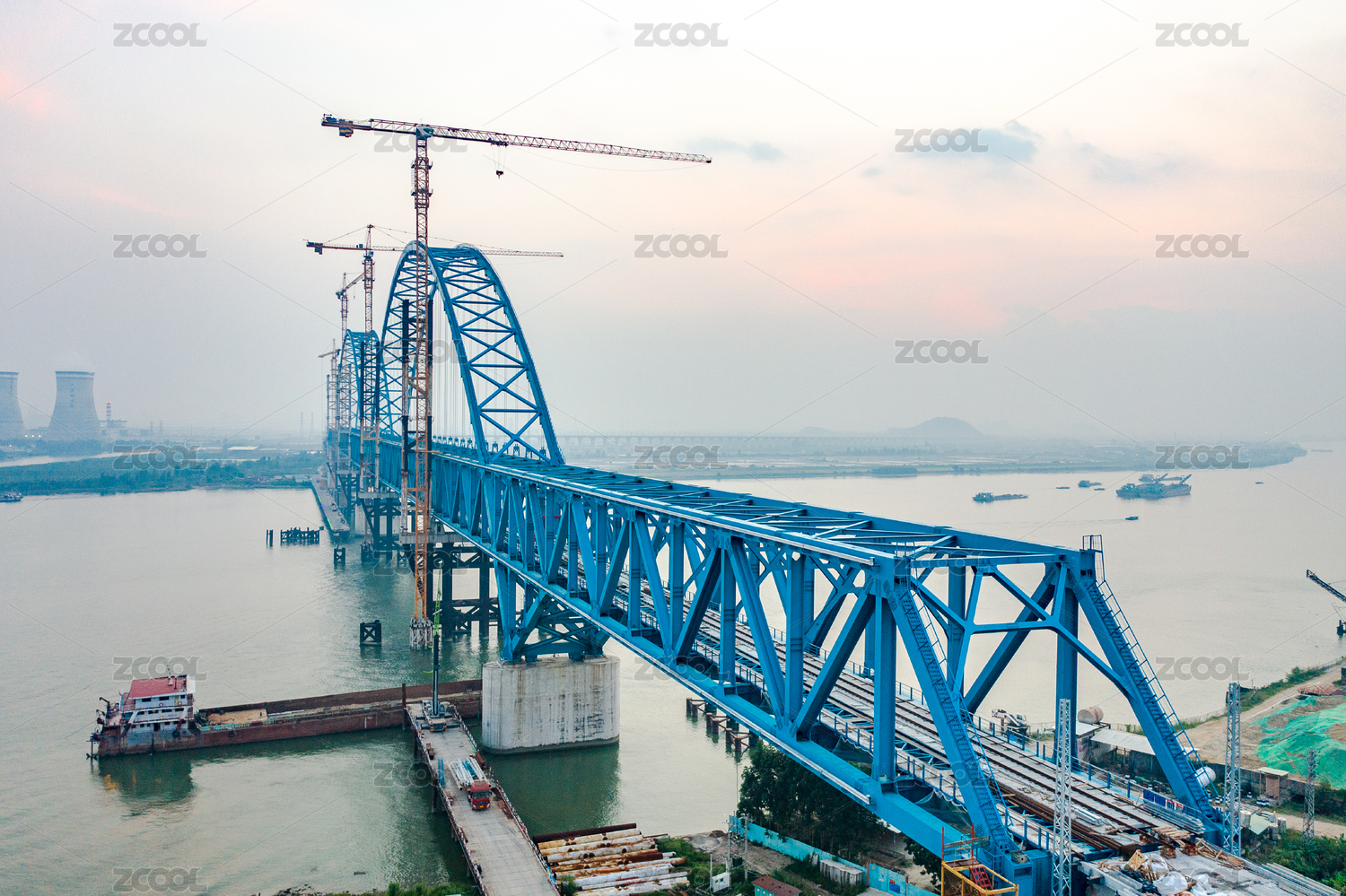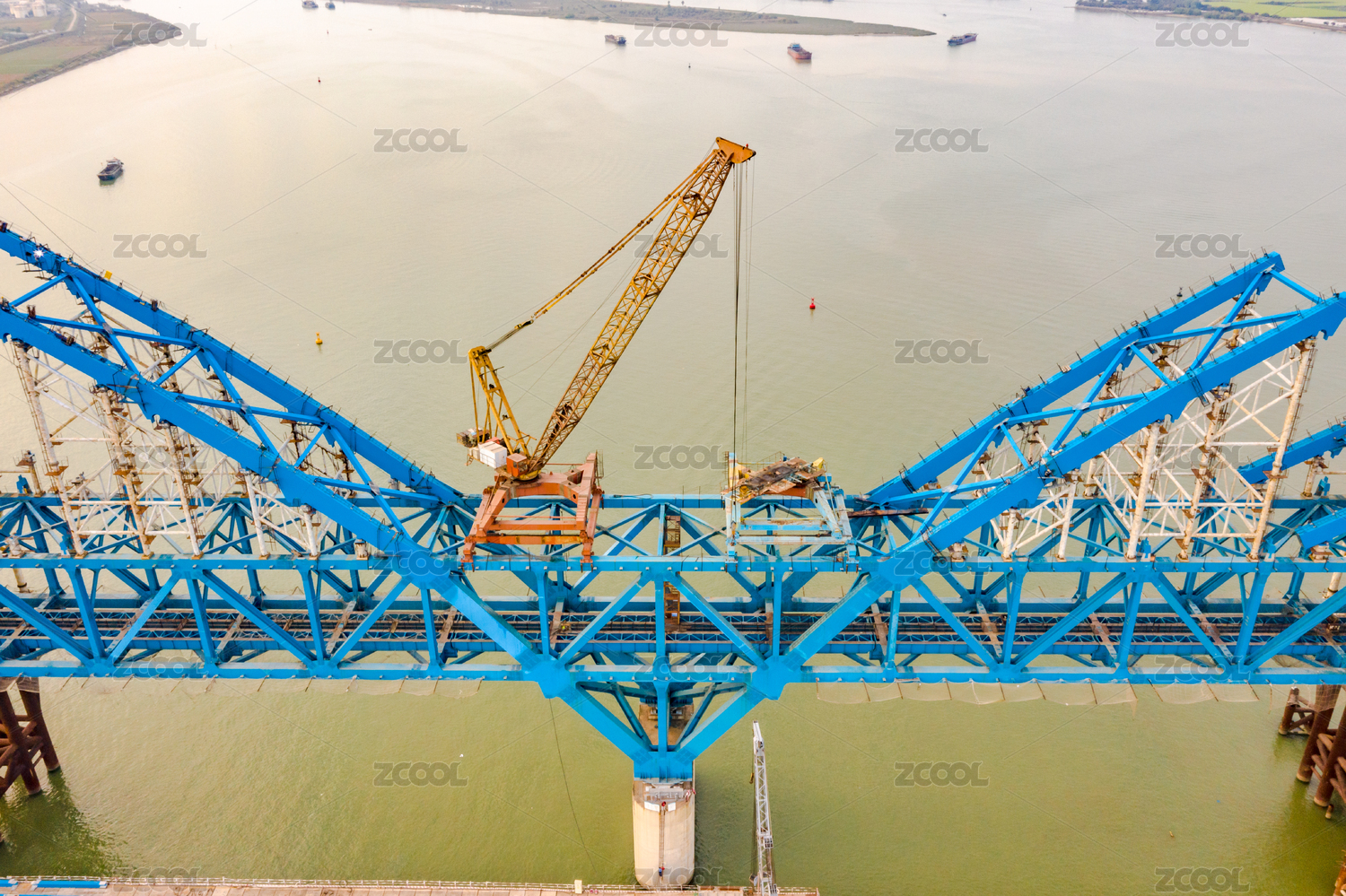 施工的南沙港铁路跨洪奇沥水道特大桥