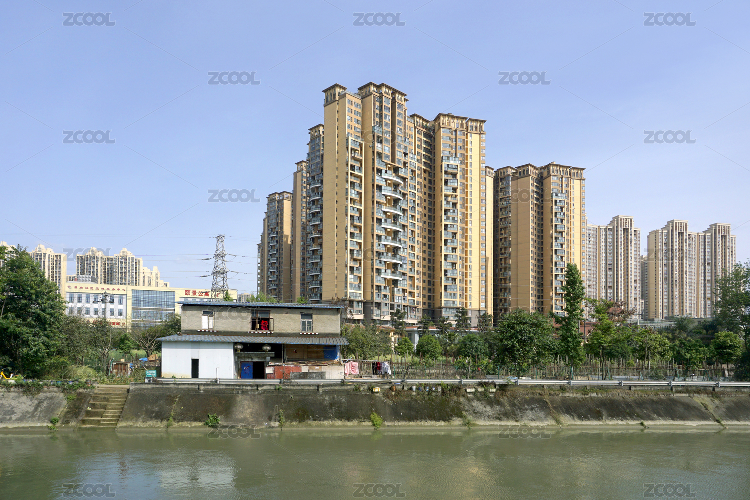 中国四川流经成都龙泉驿区城区的东风渠风光