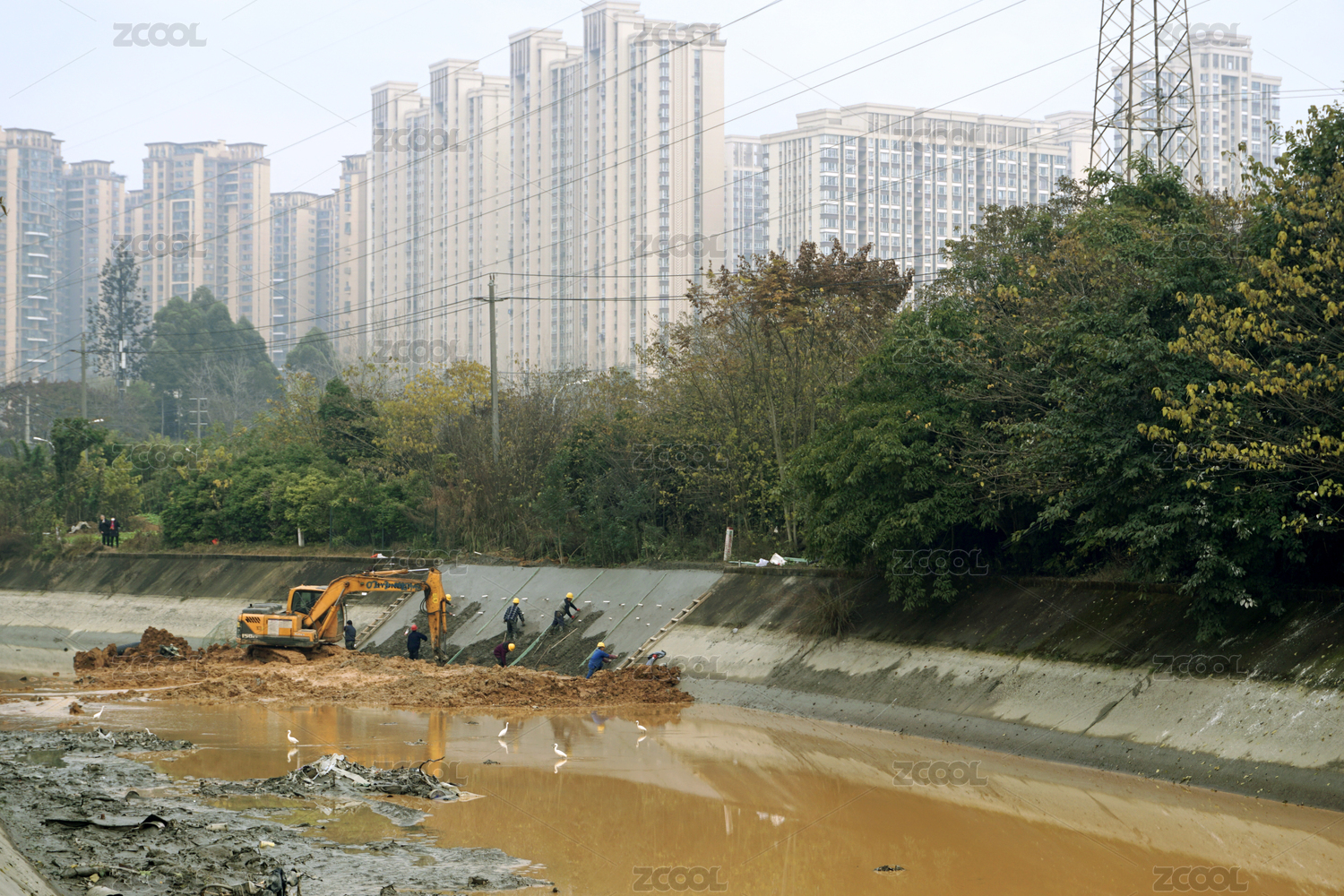 中国成都东安湖体育公园建设东风渠改道工地