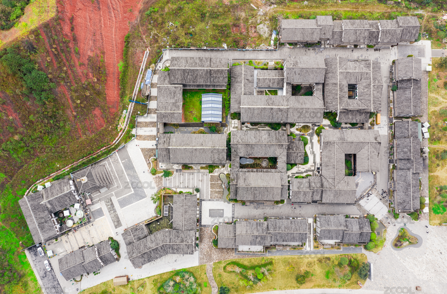 四川乐山夹江县东风堰千佛岩景区古建筑航拍