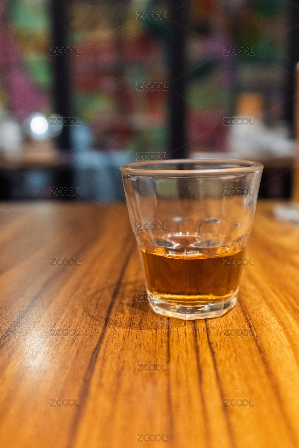 平视角度木质桌面上圆盘里的一盘炸鸡腿