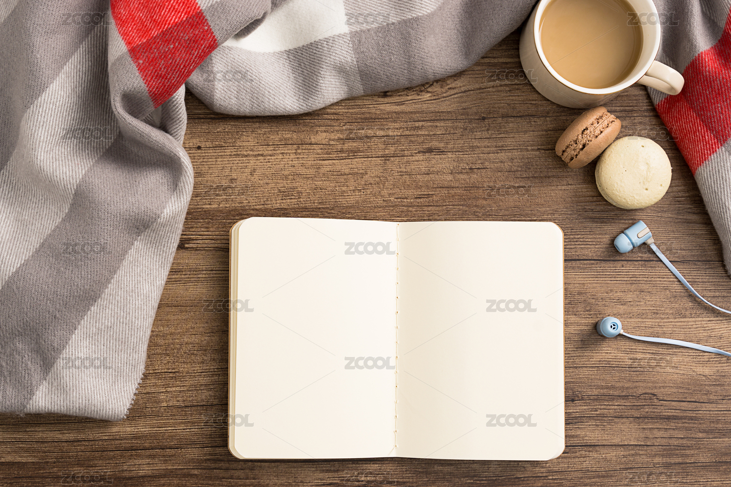 黄色的木质桌面上放着空白的白色画纸和刷子等文具