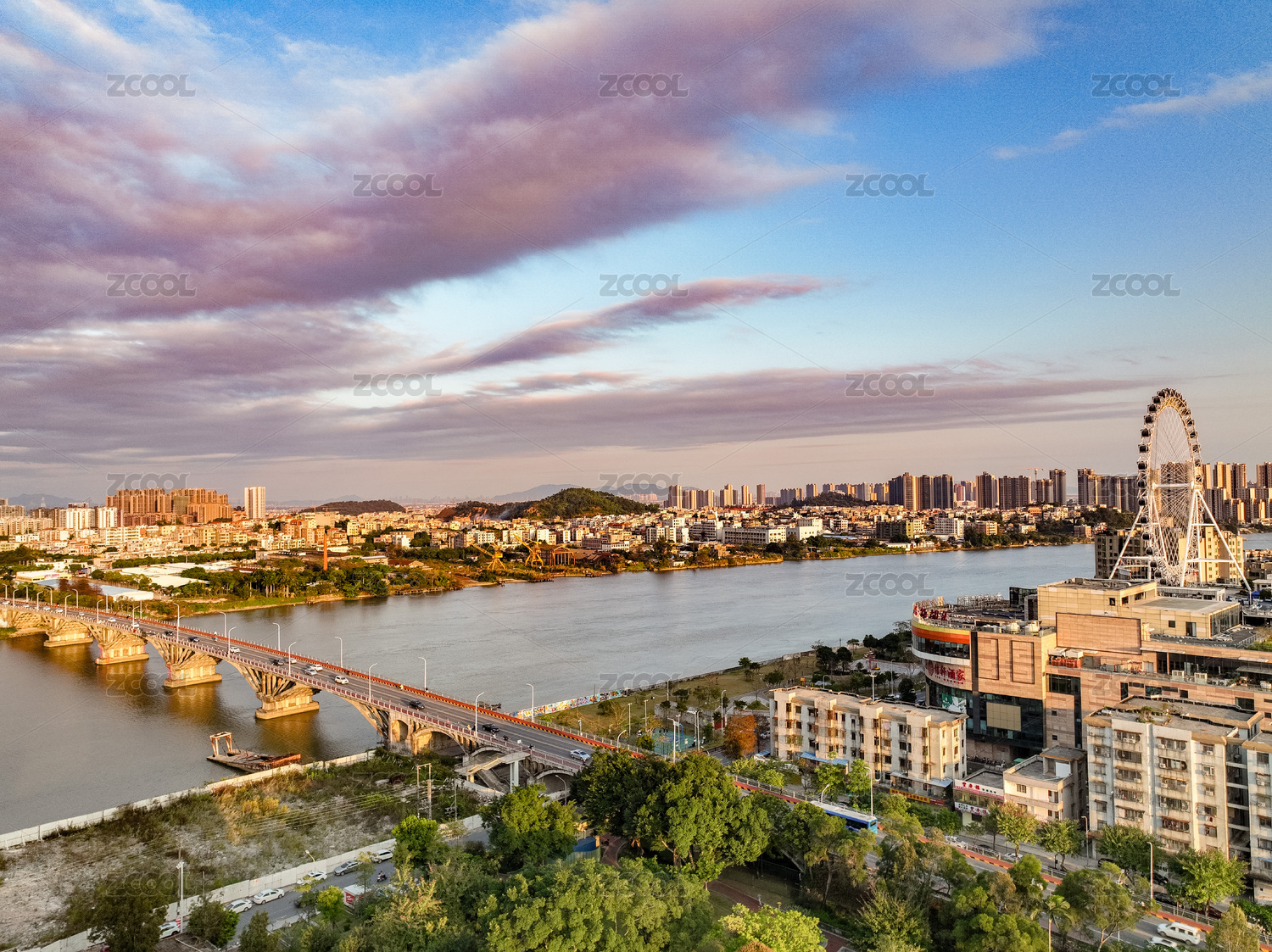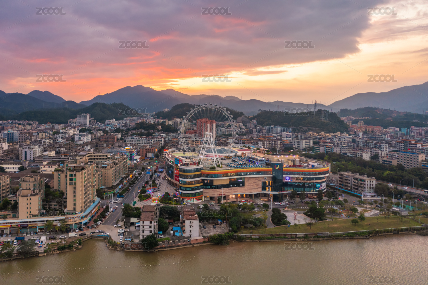 广东省珠海市斗门井岸大信摩天轮夜景航拍