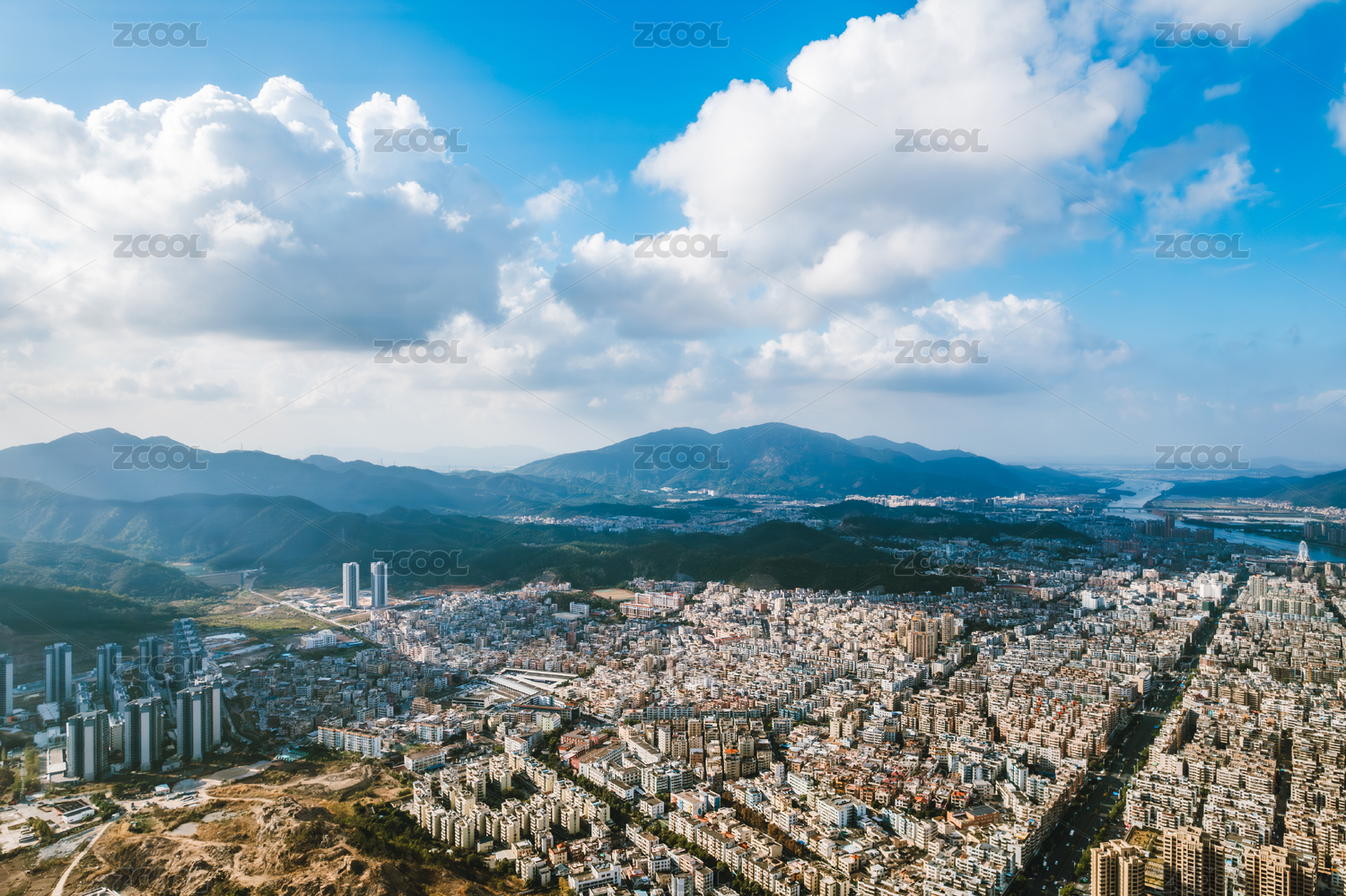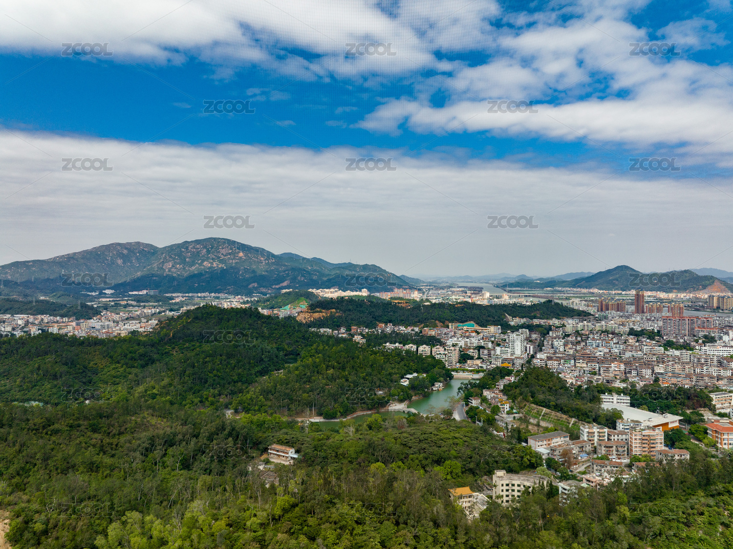中国广东省珠海市斗门区井岸镇霞山公园航拍