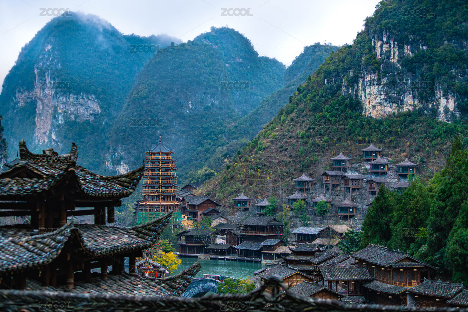 中国贵州兴义市万峰林景区布依族村庄秋天