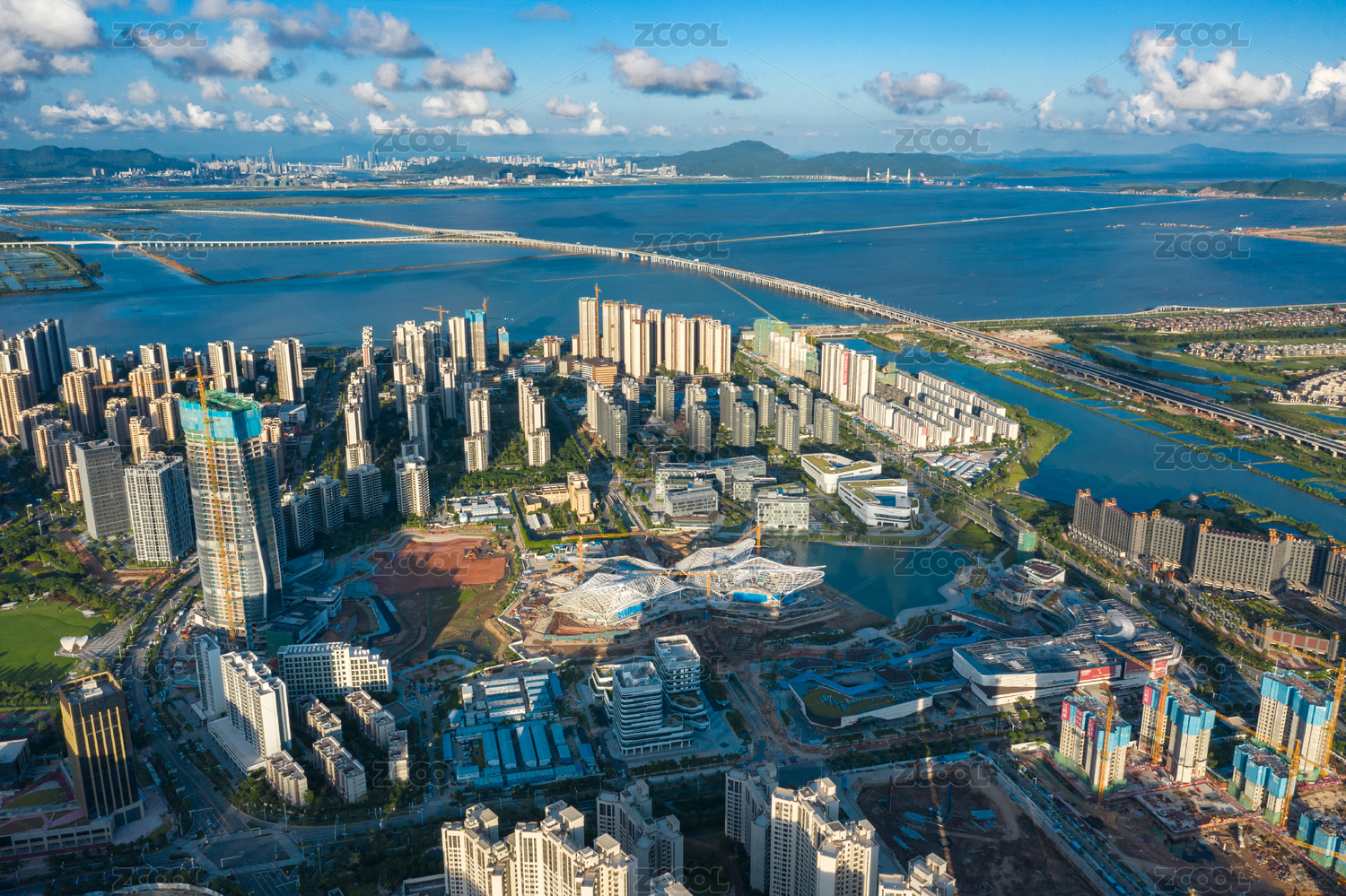 中国广东珠海市金湾区航空新城华发商都城市风光航拍