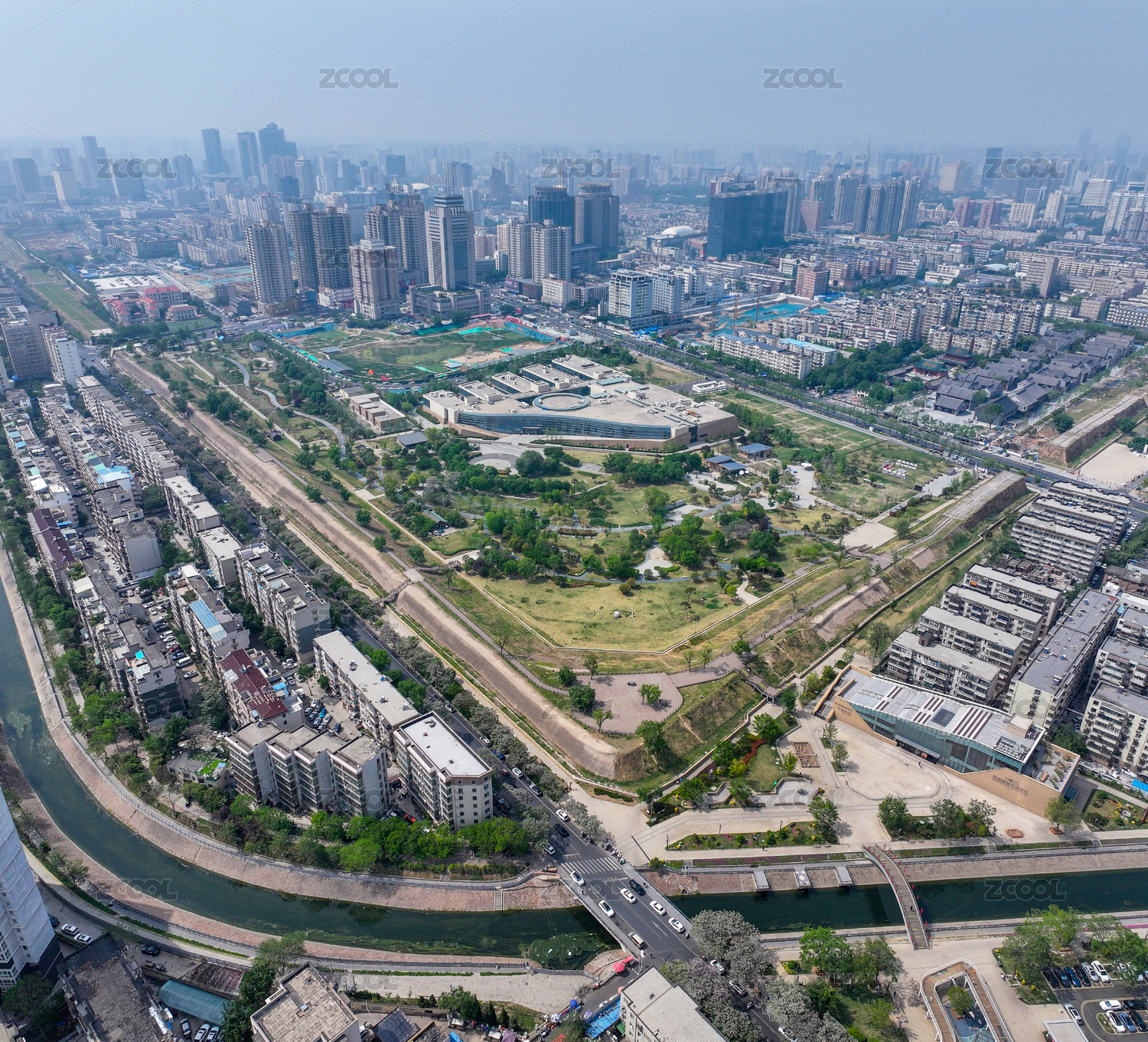 河南省郑州商都考古遗址公园与文庙航拍