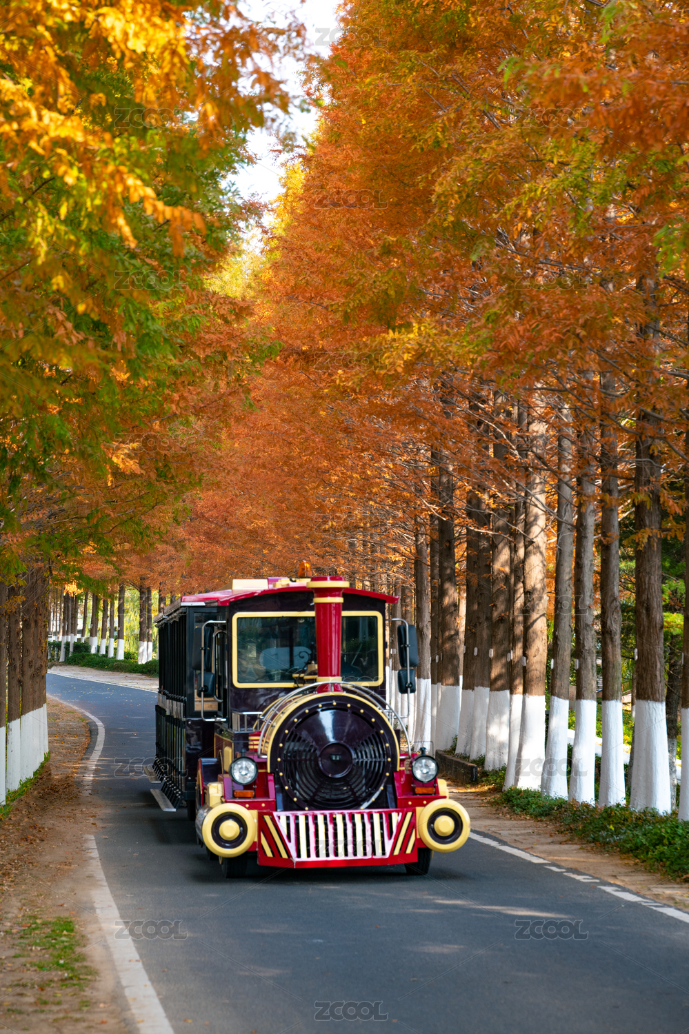 山东青岛世博园林荫路上的摆渡小火车