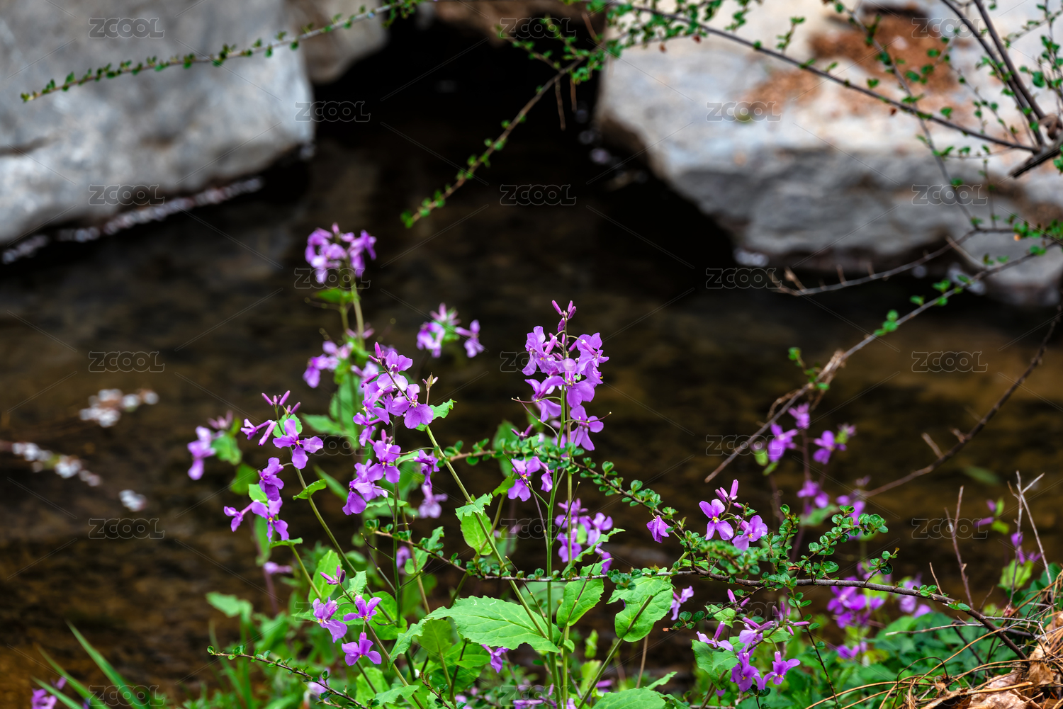 青岛世博园溪水边盛开的二月兰