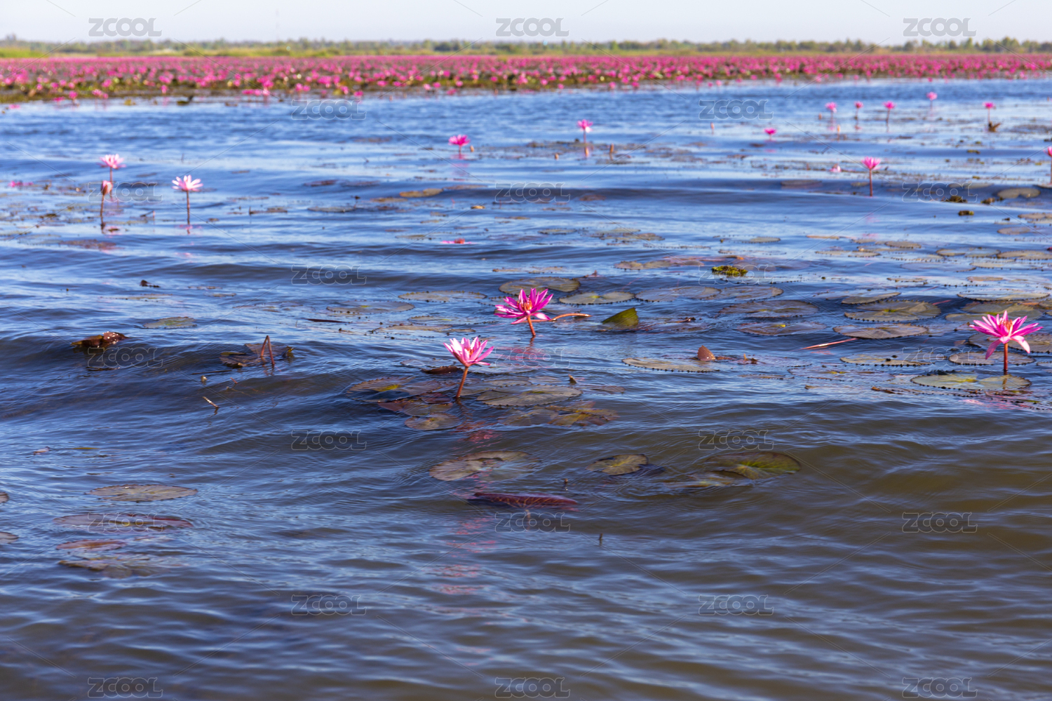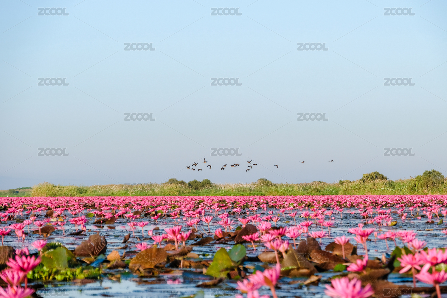 泰国东北乌隆他尼红莲湖盛开的红莲花海
