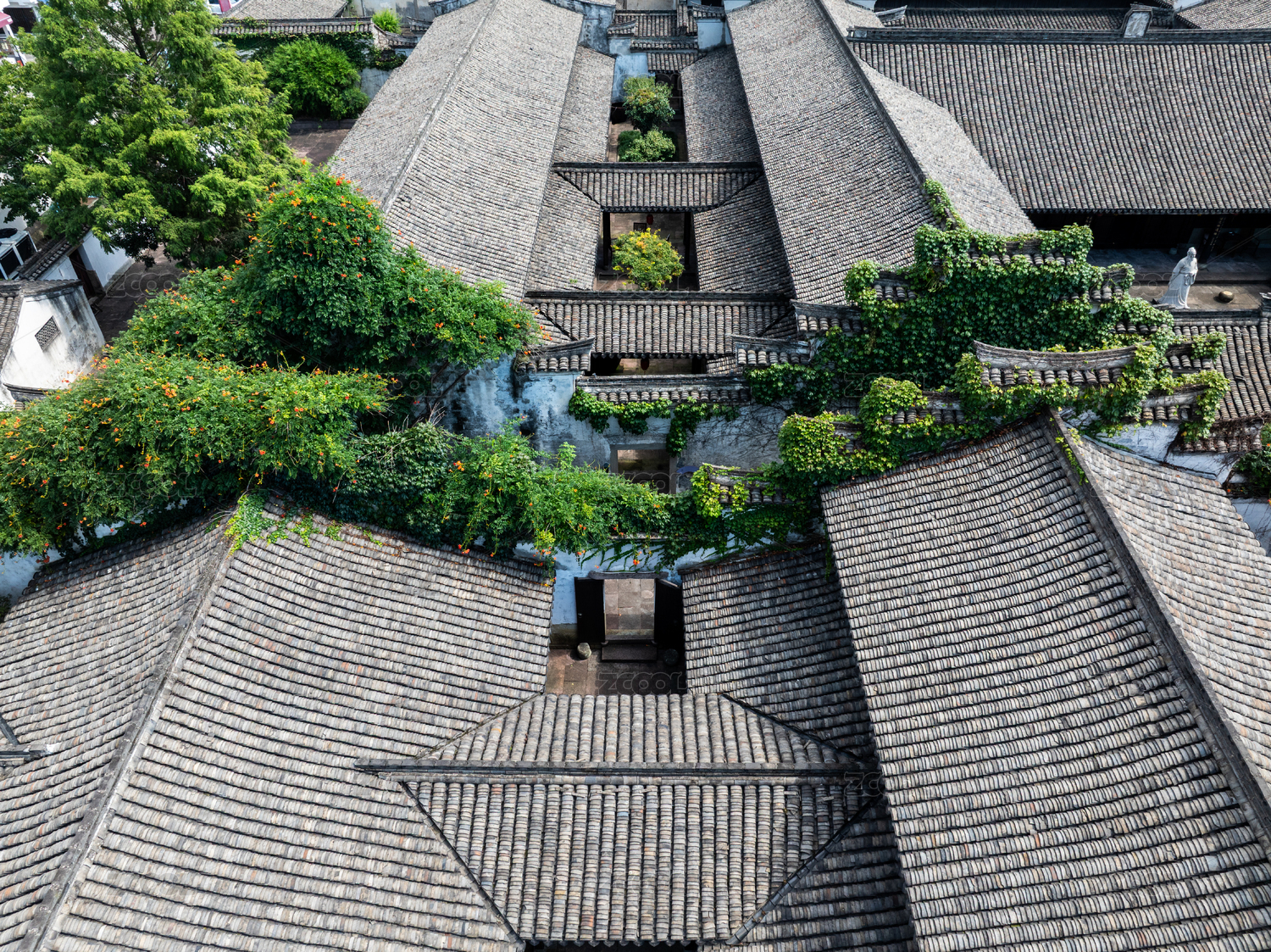 浙江宁波镇海郑氏十七房古建筑群航拍