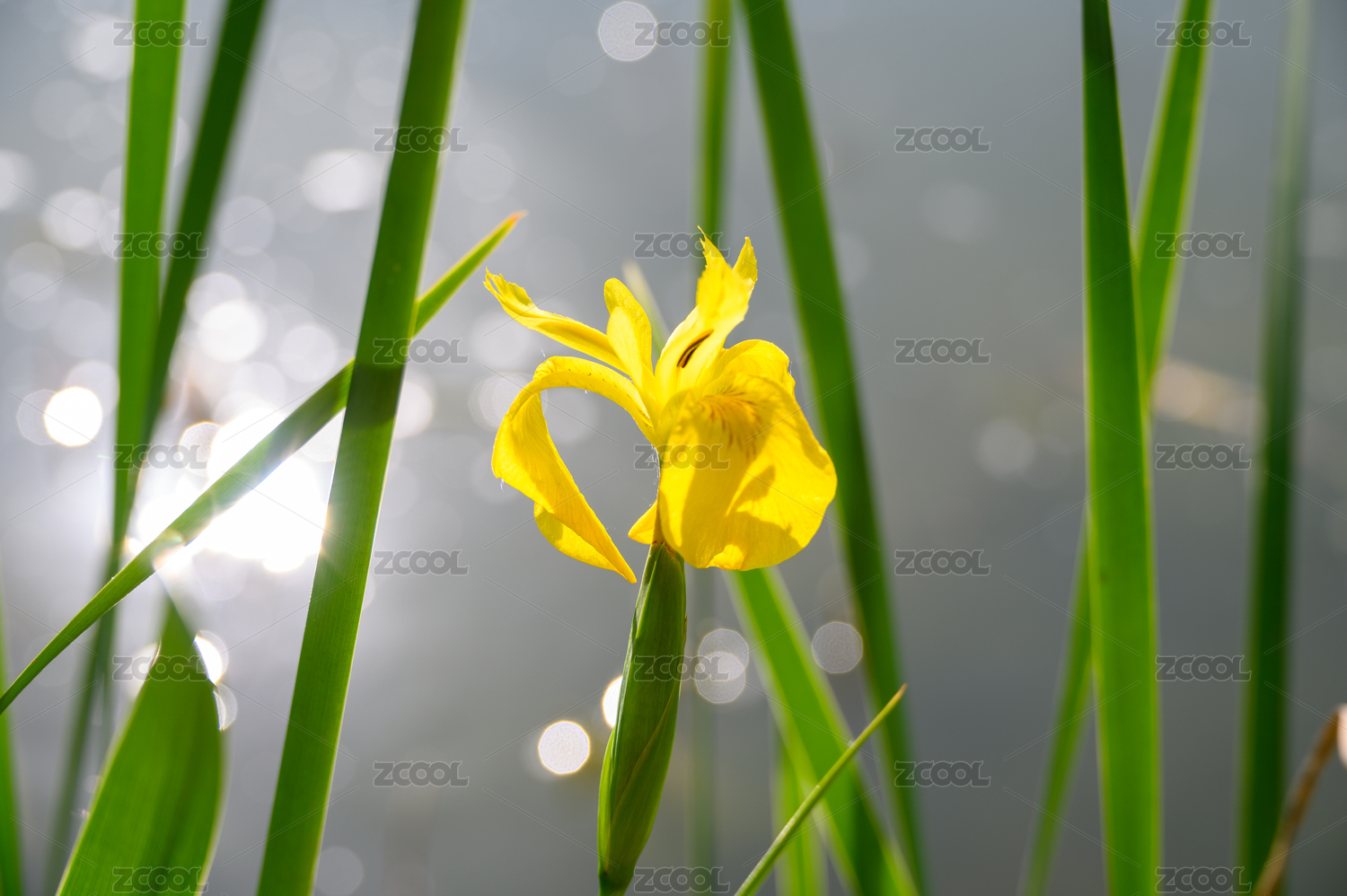 水里生长着的黄菖蒲
