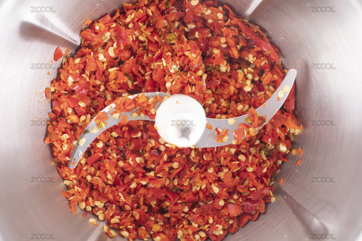 搅拌机中的辣椒碎
